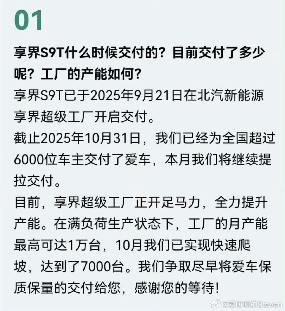 极限状态享界S9T的月产能可达到1万,这个月8-9千肯定没问题,现在还有购置税兜底。