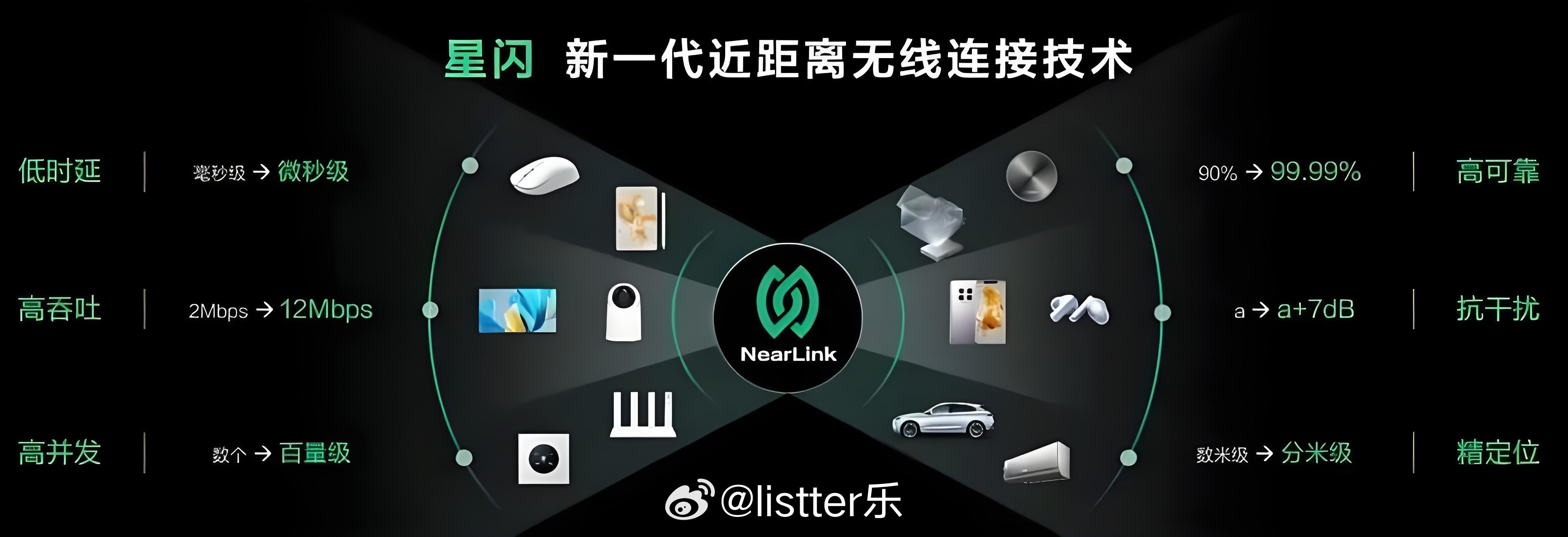 华为即将发布首款星闪耳机 先来给大家科普一下什么是星闪技术,这是由国际星闪无线短距通信联盟于2021年12月发布的新型无线短距通信标准技术星闪技术,相比蓝牙,星闪技术有延时低、传输快、抗干扰好等优势,用上了星闪技术的耳机,可以保证耳机高保真音质与稳定低延时传输的痛点。如果大家用过蓝牙耳机,肯定经历过这种尴尬:手机稍微离耳机远一点就信号断断续续说话听不清声音。如果你戴着有星闪技术的无线耳机,像是在机场、地铁站、商场等无线信号复杂拥挤的环境下,几乎不会出现声音卡顿或断连的情况。我觉得这也是未来耳机的发展方向:技术本来的目的就是让人感觉不到技术的存在,你用上星闪耳机会给你带来的是一种前所未有的“无缝”自由感。华为首款星闪耳机能否封神
