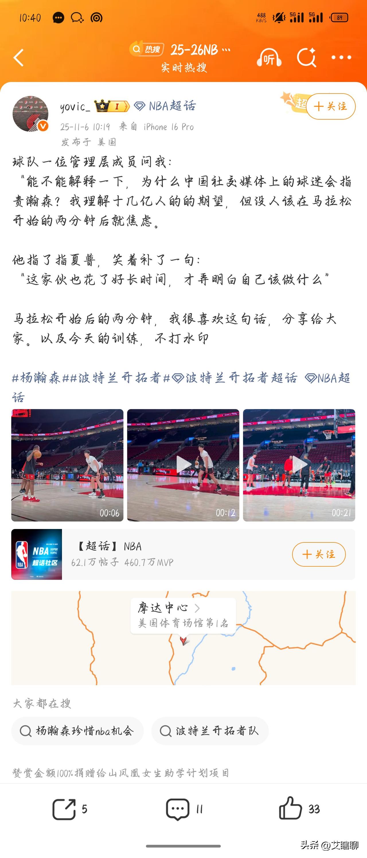开拓者管理层说杨瀚森目前是“马拉松开始后的两分钟”的状态很有意思,相当于万里长征第一步,也就是说球队对于小杨的培养是非常有耐心的,并且有着一定的计划,而国内球迷却是最缺乏耐心的那一批人,咱们大多数球迷心态要摆正。 杨瀚森 杨瀚林NBA 新星杨瀚森 你觉得杨瀚森未来在NBA的潜力如何