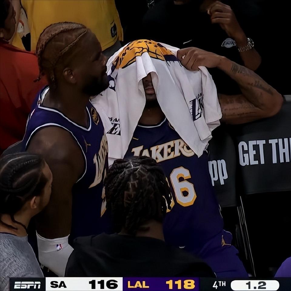 刚哥!斯玛特最后1.2秒发底线球踩线,送给了马刺绝平甚至绝杀的机会,暂停后,刚哥用毛巾捂脸,对自己刚刚的大意非常懊恼。 最终湖人险胜了马刺,才没有让刚哥这次失误酿成不好的结果,他整场比赛投篮手感不佳,但罚球很稳,10罚10中,防守端也贡献巨大,现在已经是湖人的香饽饽了。