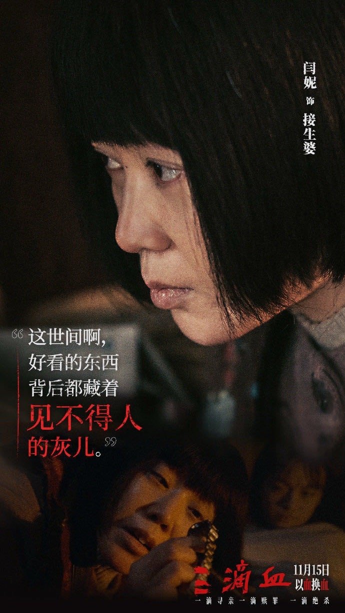 闫妮人生角色上新 闫妮在《三滴血》中完成华丽转身!接生婆一角让她彻底跳出舒适圈,将人性的贪婪与算计刻画得淋漓尽致。轻轻一笑就让人毛骨悚然,好演员的突破永远令人惊喜!