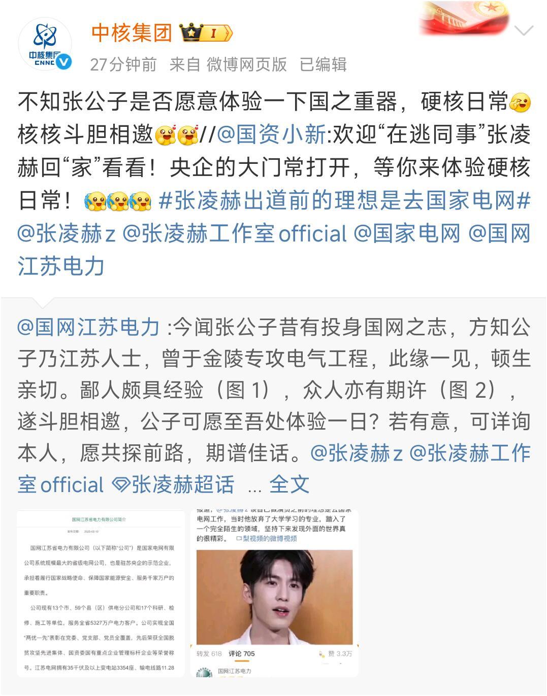 张凌赫*国家电网后续,核能也来抢人了。今天大V们都是文邹邹的书卷气,彻底让我改观了对理科生的刻板印象,都好有才啊!我们小张同学连夜温书,抱着自己那两本模电和数电陷入了沉思,也不晓得张同学在学电机的时候有没有感觉头疼[捂脸] 他每个地方都去一遍,也怕是真的成为张工了,大出圈,江苏电力还置顶了这条wb, 南京日报 也来凑热闹,但是团结?说的是江苏?我在天津都知道你们一点儿都不团结[吐舌]散装江苏[机智]无锡:团结?他不来我这更别想去你那,感觉这才是你们的调调。 有人问 电网的这个邀请,给编制吗?哈哈哈,一日编,给编而不占编,不过就他这样的帅哥进去,第一天各种领导抢着给自己闺女相亲。 国家电网可以没有 张家玮,但内娱不能没有张凌赫,天津亦青睐公子,何不至天津? 张凌赫