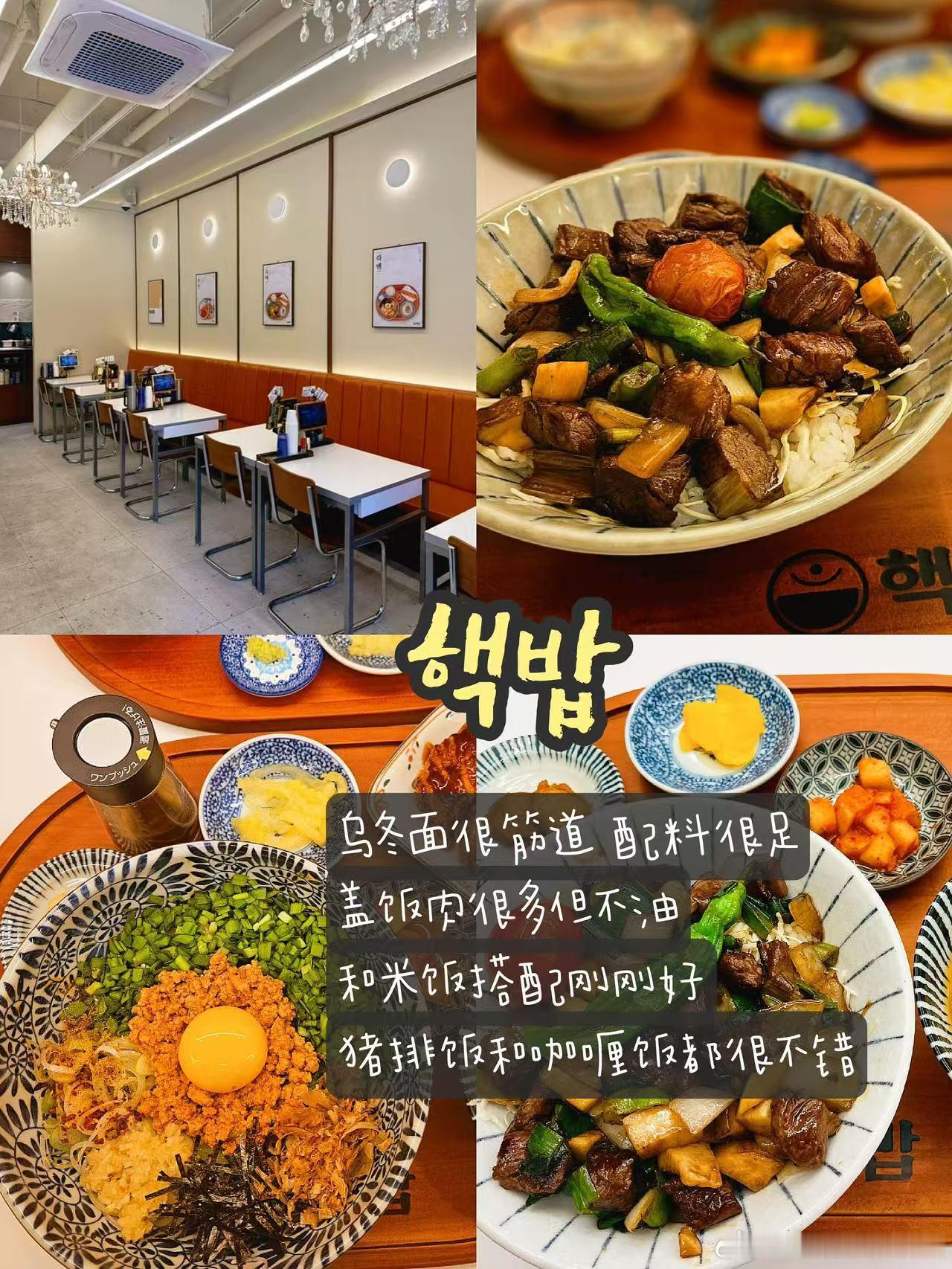 🍛핵밥:离海云台地铁站3号口只有几十米,有各种盖饭和乌冬、荞麦面,一人食的套餐只要五六十,小菜很多性价比很高