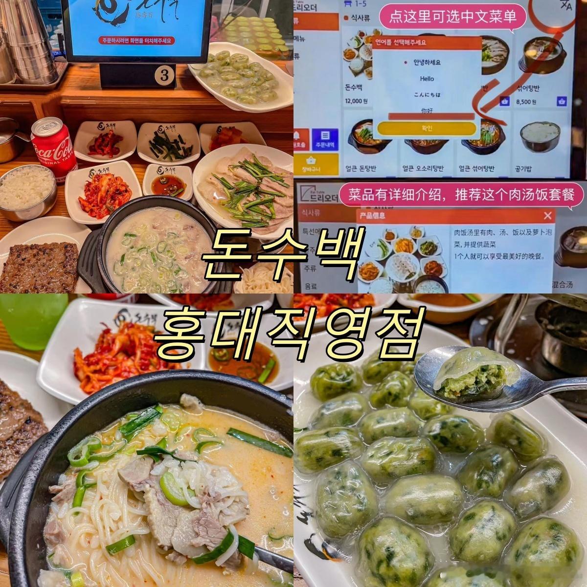 🥘豚寿百(돈수백 홍대직영점):一人食天堂,平板电脑点餐,可以切换中文餐单!一套汤饭东西很多,几十块rmb就能吃得很好!推荐돈수백肉汤饭~