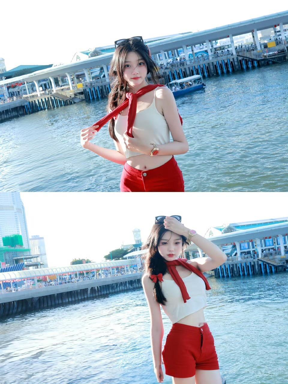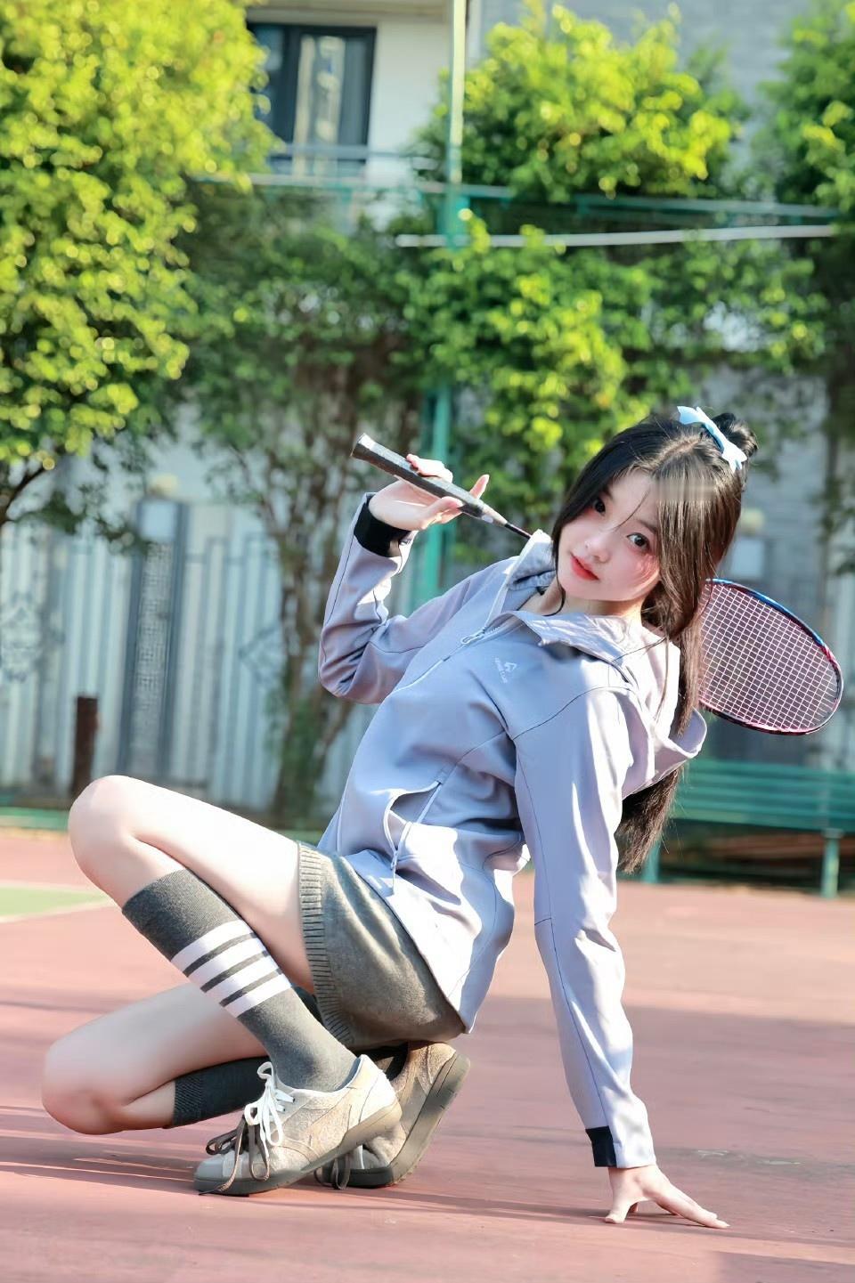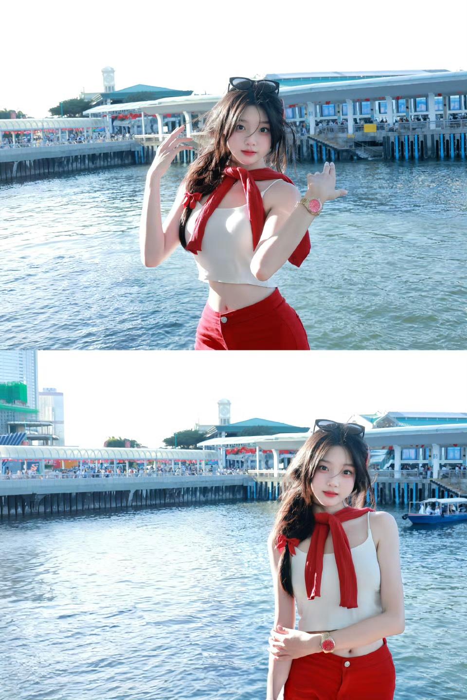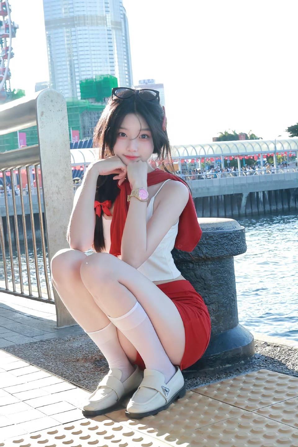 优雅坐阶间,白衣飘飘,粉鞋点缀,静享时光。