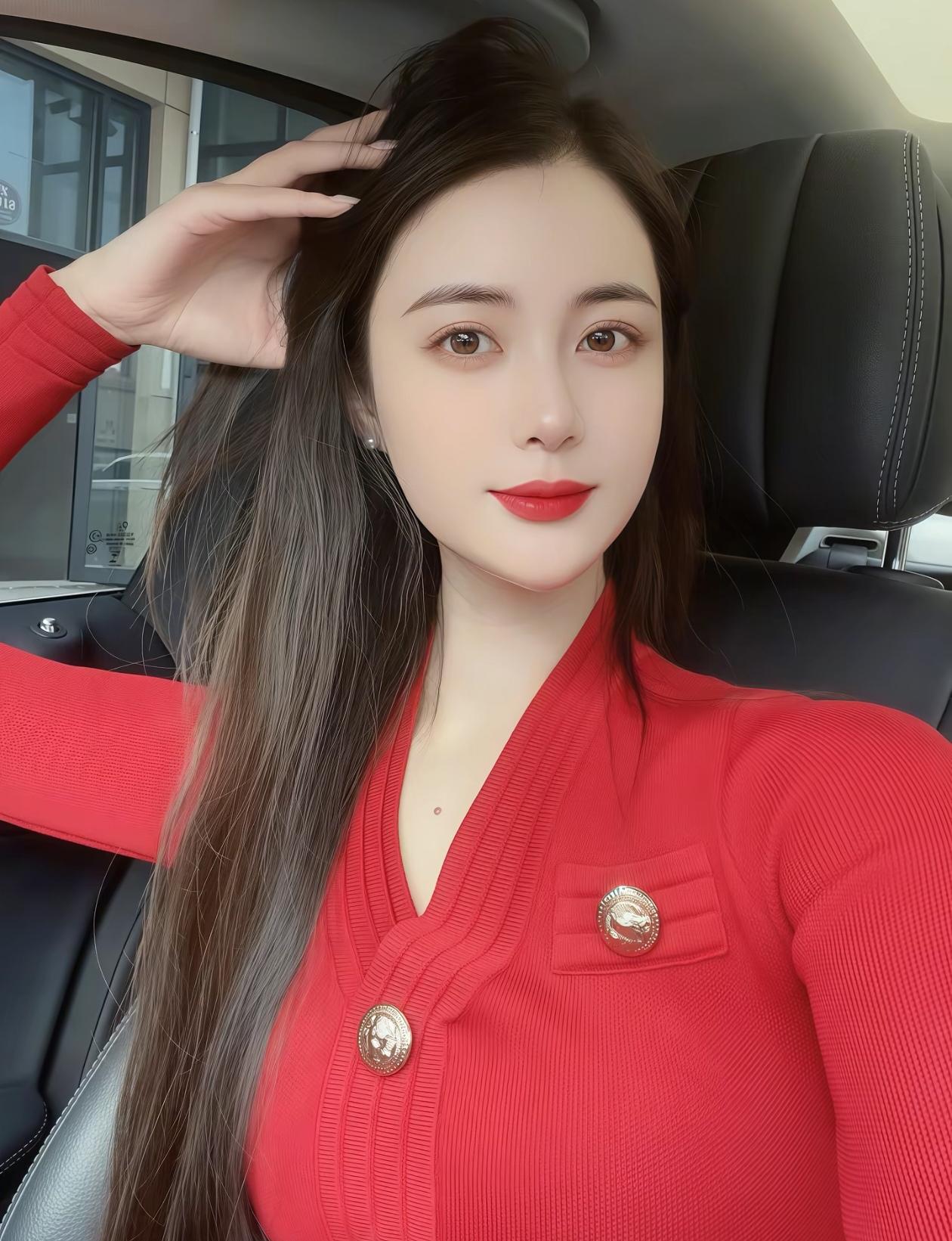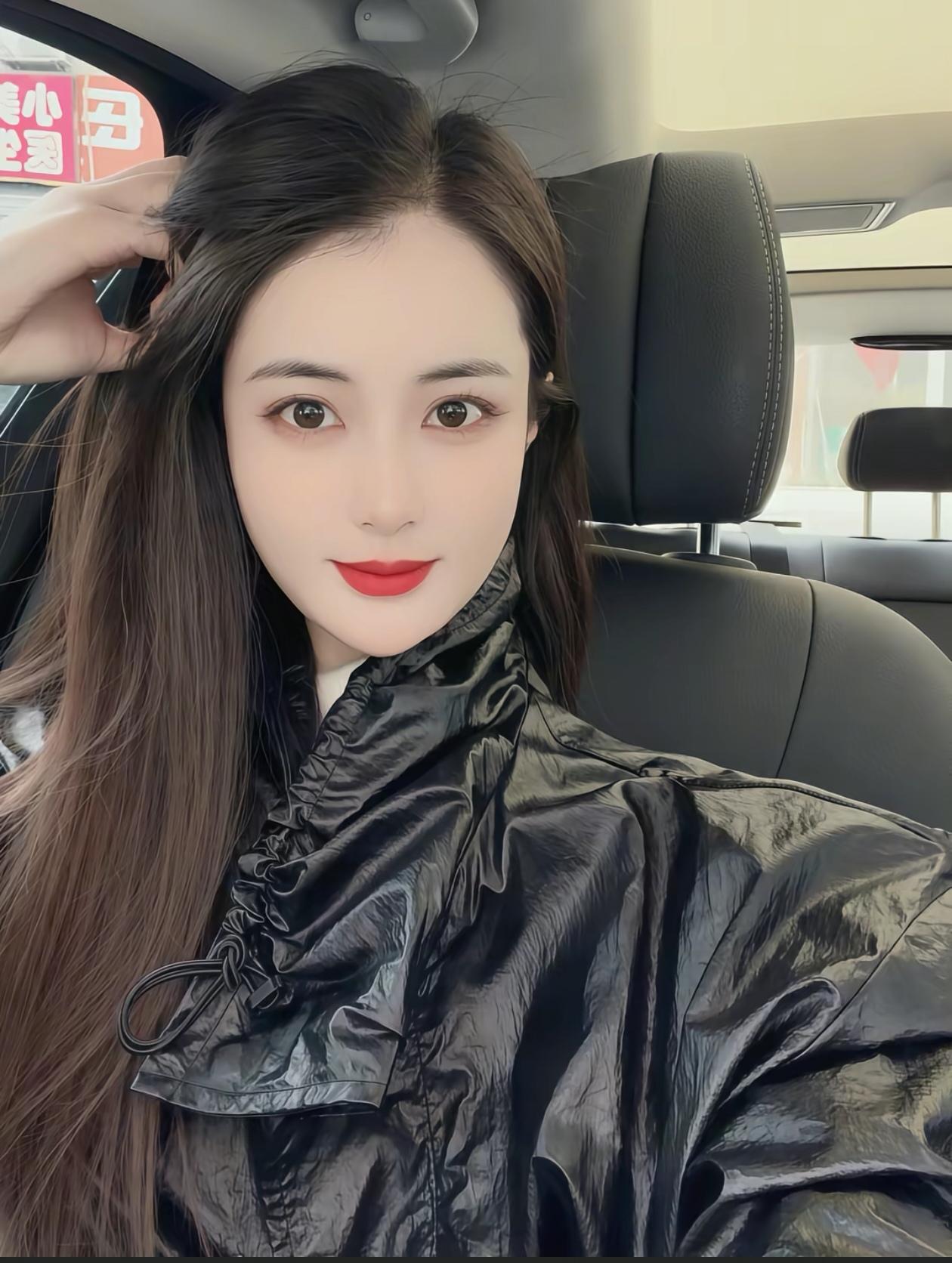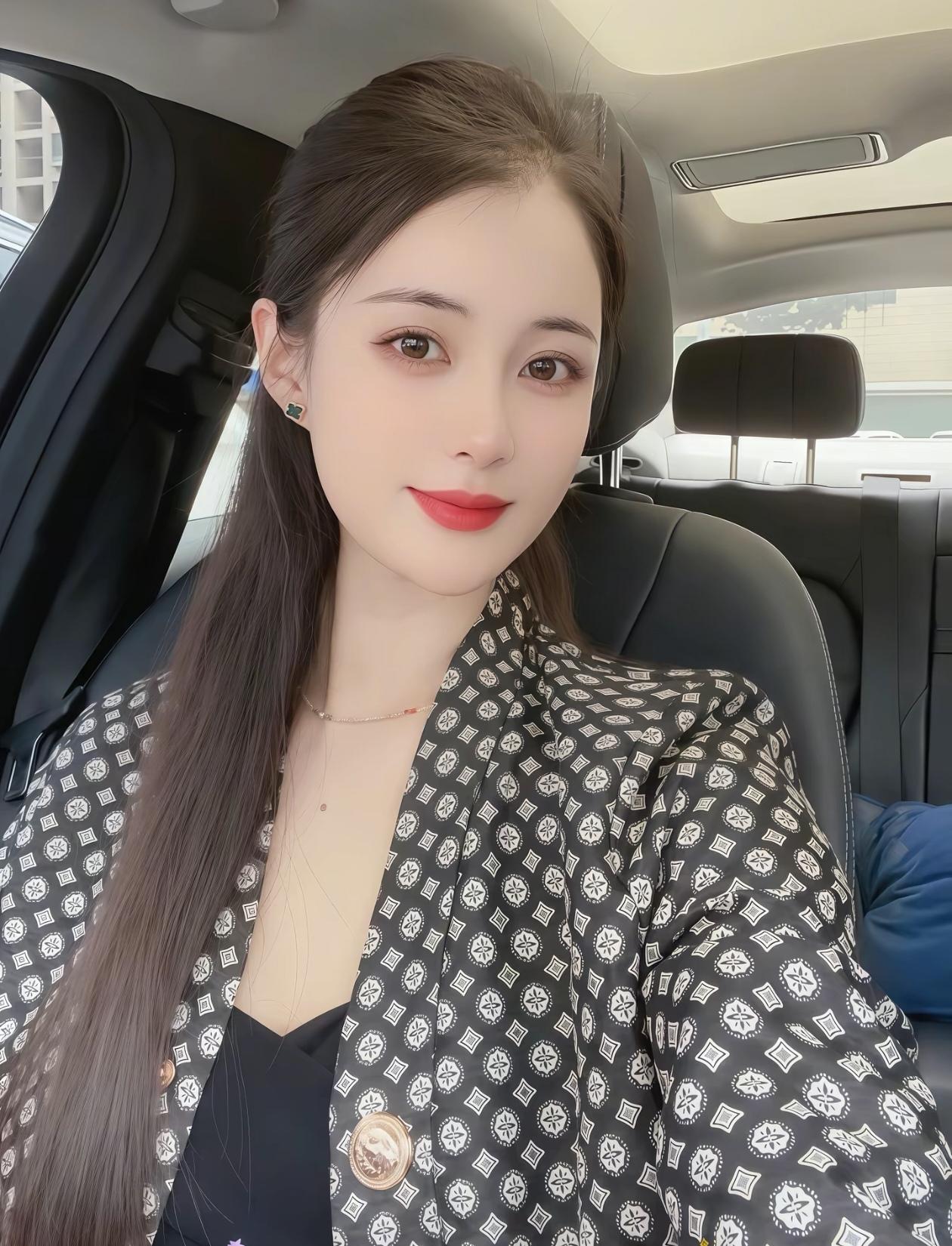 这位小姐姐在车里自拍呢。