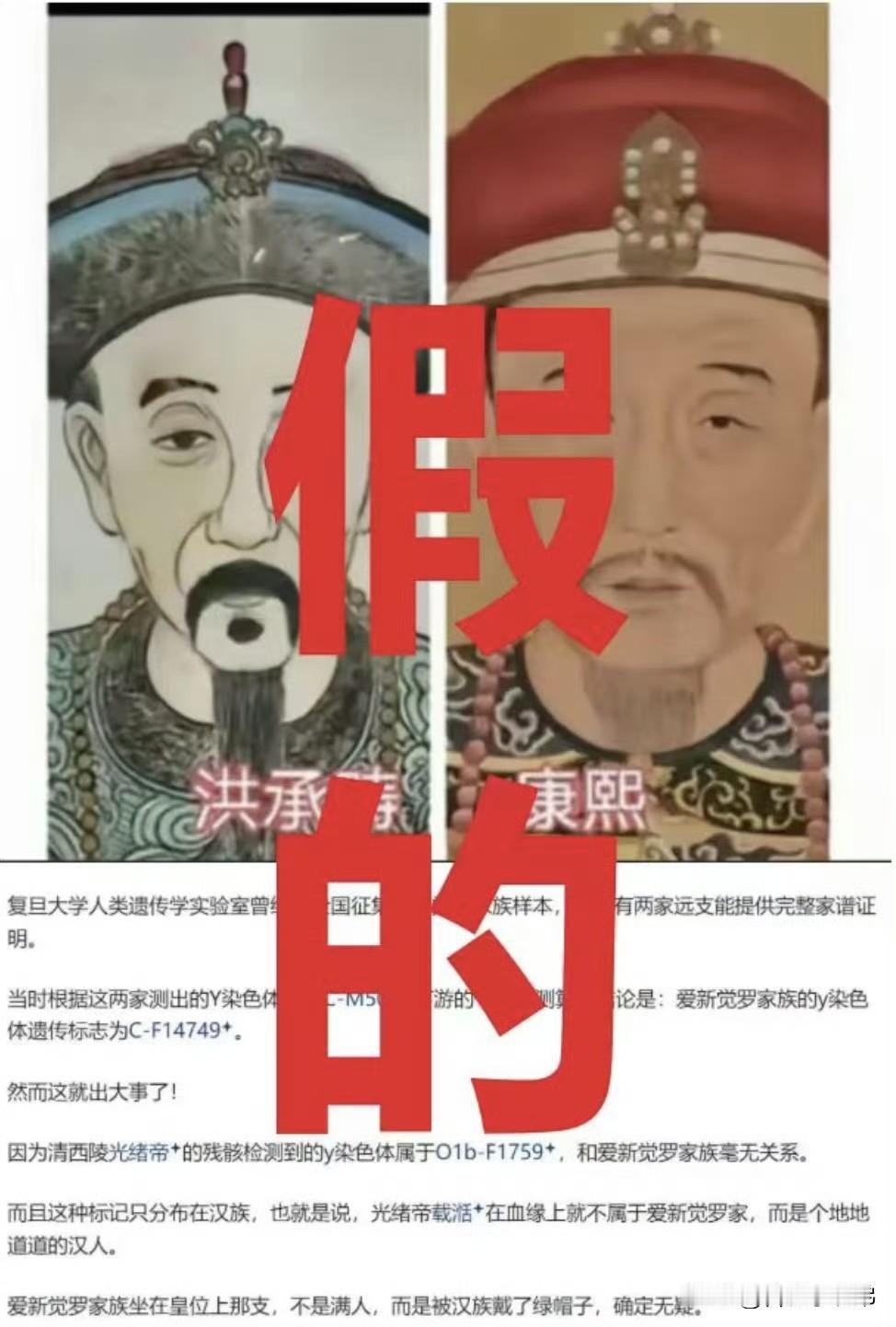 近期,“康熙是洪承畴儿子”的野史在网络疯传,还拿“光绪Y染色体与爱新觉罗家族不符”当“铁证”,纯属博眼球的无稽之谈! 首位通过DNA确定努尔哈赤Y染色体类型的专家——中央民族大学严实副教授直接硬核辟谣:采样雍正之子弘昼后代的DNA,明确属于努尔哈赤支系,足以证明康熙、雍正一脉血脉纯正,与洪承畴毫无关联! 至于“光绪Y染色体”的说法更站不住脚,2010年古DNA技术才取得突破,早年根本不具备检测条件,所谓“证据”可信度为零。更值得警惕的是,这类谣言扎堆出现,很难不让人怀疑是刻意带节奏。 最近某部电影还未上映在网上倒戈,怎么突然就开始有人洗白。历史不是任人编造的八卦,别让别有用心的造谣,消解真实的历史厚重感!你怎么看这些离谱野史?评论区聊聊~