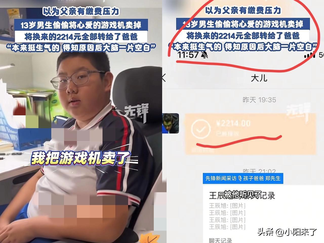 吉林,上初中的儿子突然给父亲转了两千多块钱,父亲赶紧过去问,竟是孩子偷偷卖掉了心爱的游戏机,本想发火的他,听完儿子的话瞬间破防落泪! “我听见你打电话借钱,还看到了催缴单,想帮家里分担”,十几岁孩子哽咽的一句话,藏着超越年龄的懂事与担当! 父亲又心疼又自责,红着眼眶叮嘱他好好读书,那句“努力学习是为了让你未来有更多选择”,道尽了无数父母的心酸与期许! 很多人说“怕孩子不懂事,更怕他太懂事”,这话戳中了多少家长的心! 孩子的这份担当,不是成绩能衡量的,更是成年人都该学习的责任感。这份暖心背后,藏的是家庭教育最珍贵的底色! 爱与共情从来都是相互的!