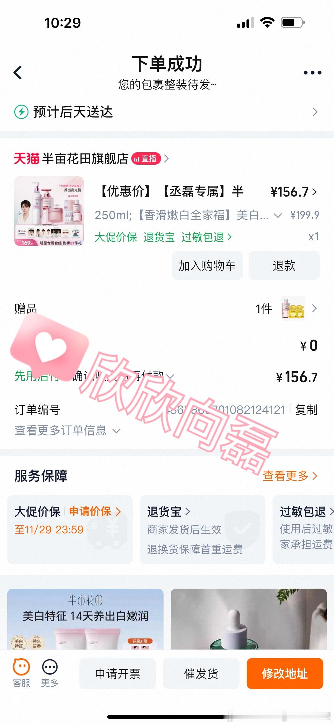 坐等收快递哦 半亩花田身体护理品牌大使丞磊