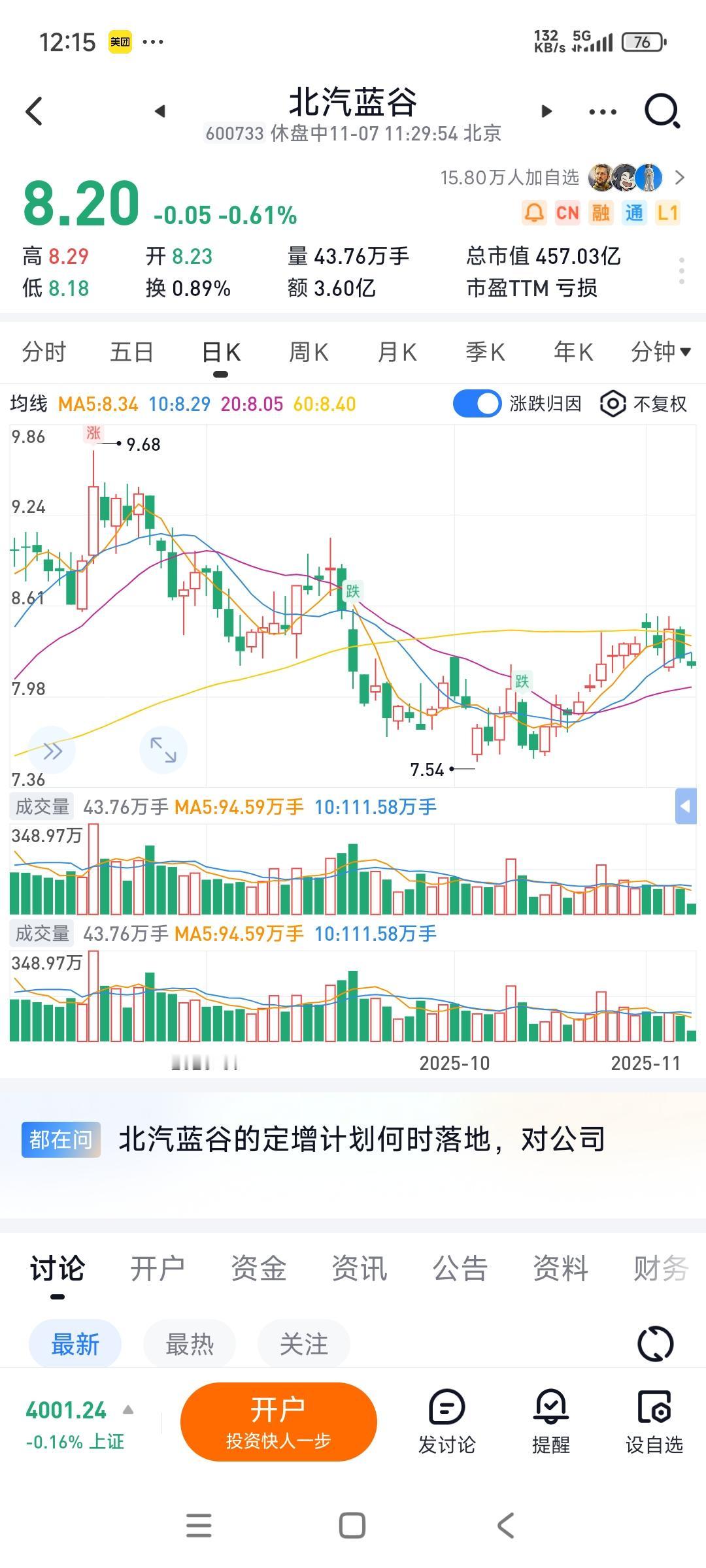 北汽蓝谷,8.20元挂单买入了20手,现在持仓210手,持仓成本7.9元... 看好就用实际行动支持,后面越跌越买...[捂脸][捂脸]