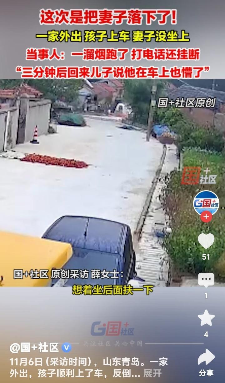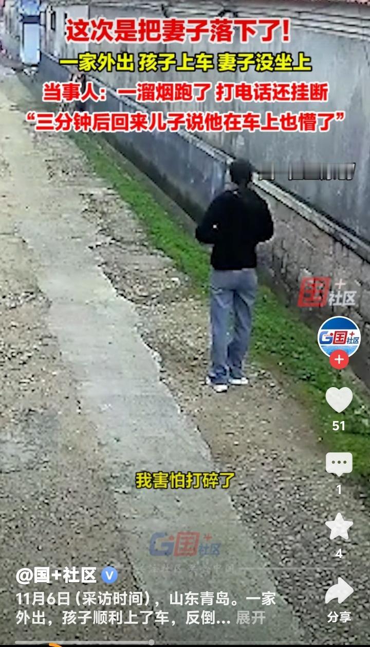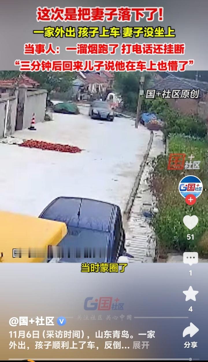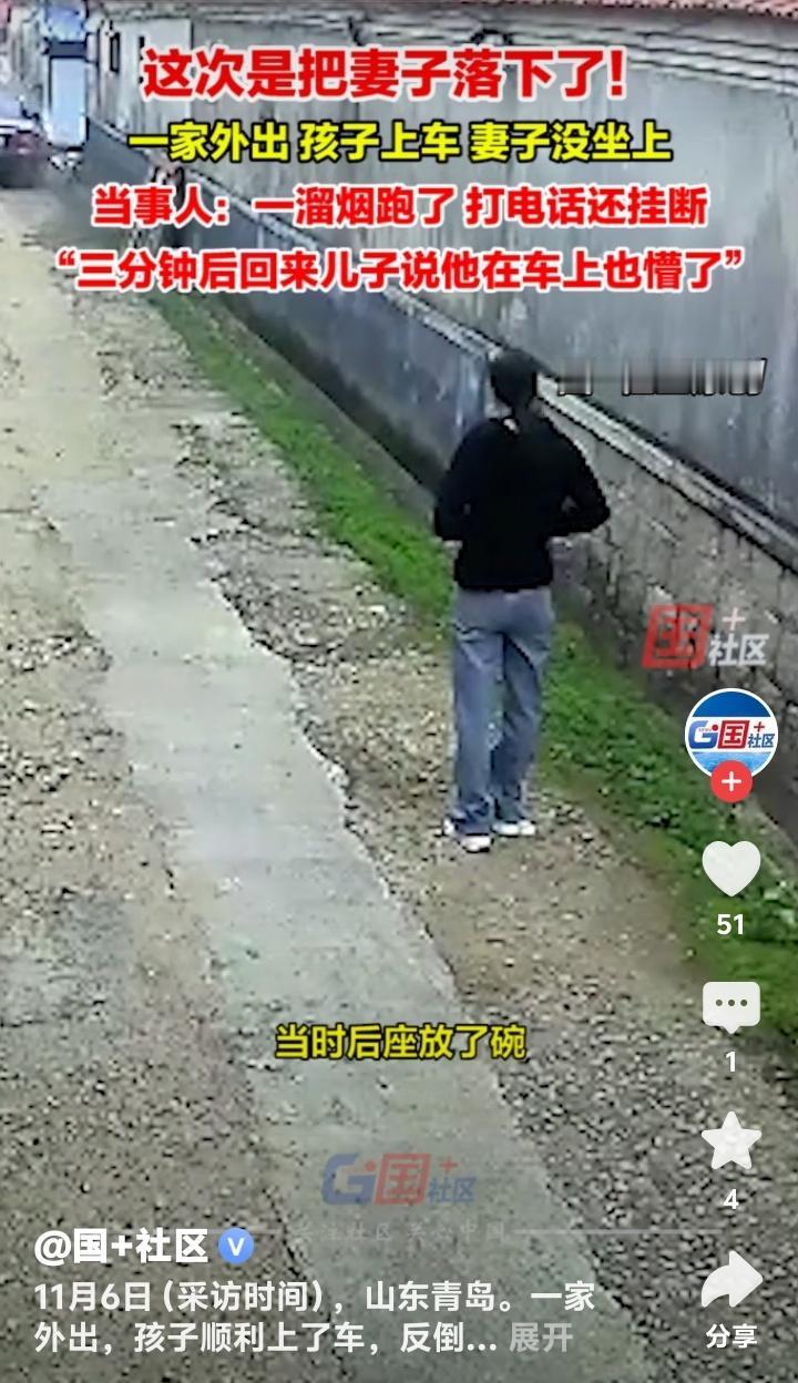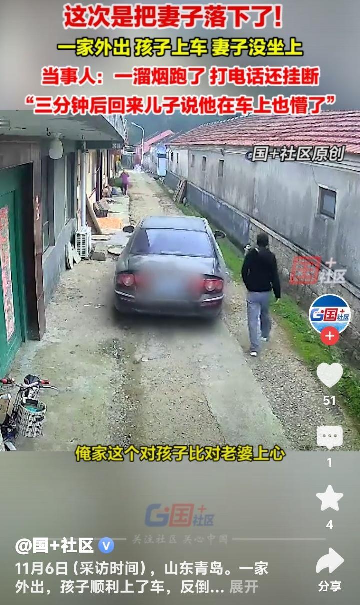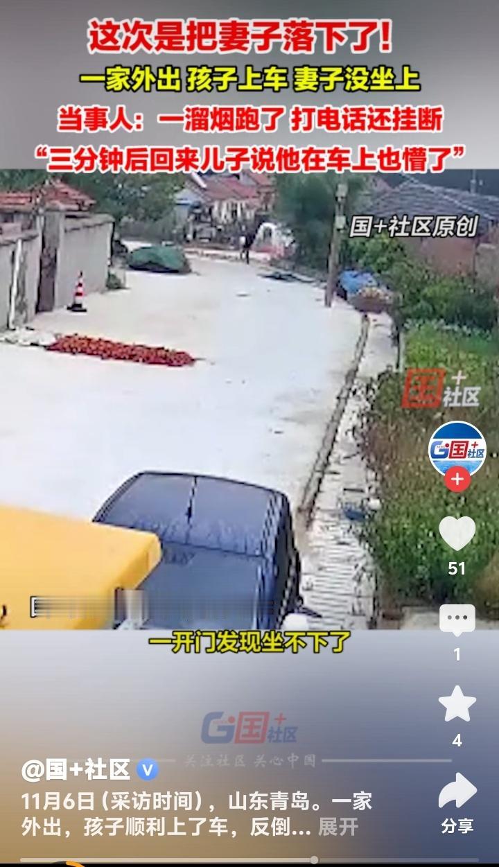 青岛爸爸开车把老婆忘路边惊呆全网!三岁儿子在车上神补刀:爸爸我妈妈没上来!背后真