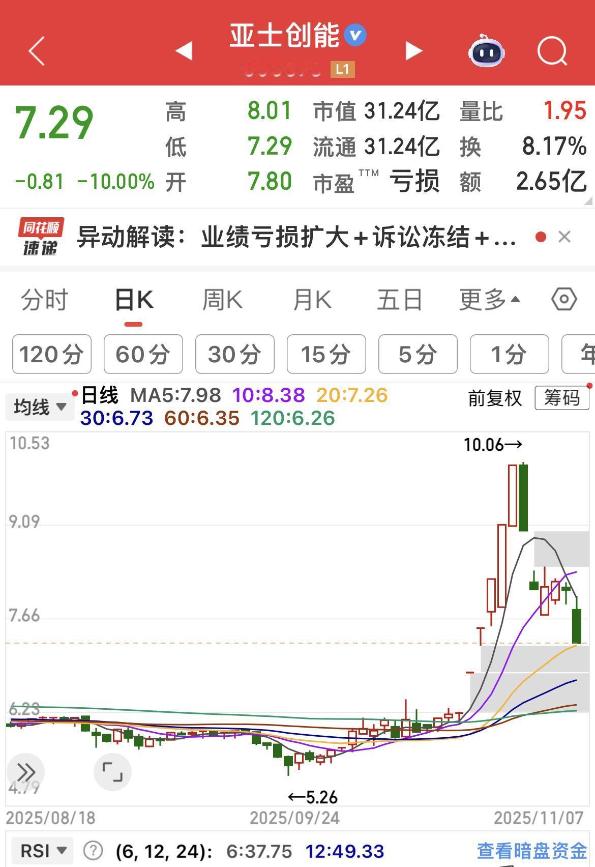 亚士创能今日跌停! 业绩亏损扩大 + 诉讼冻结 +主力出逃+散户关灯吃面。