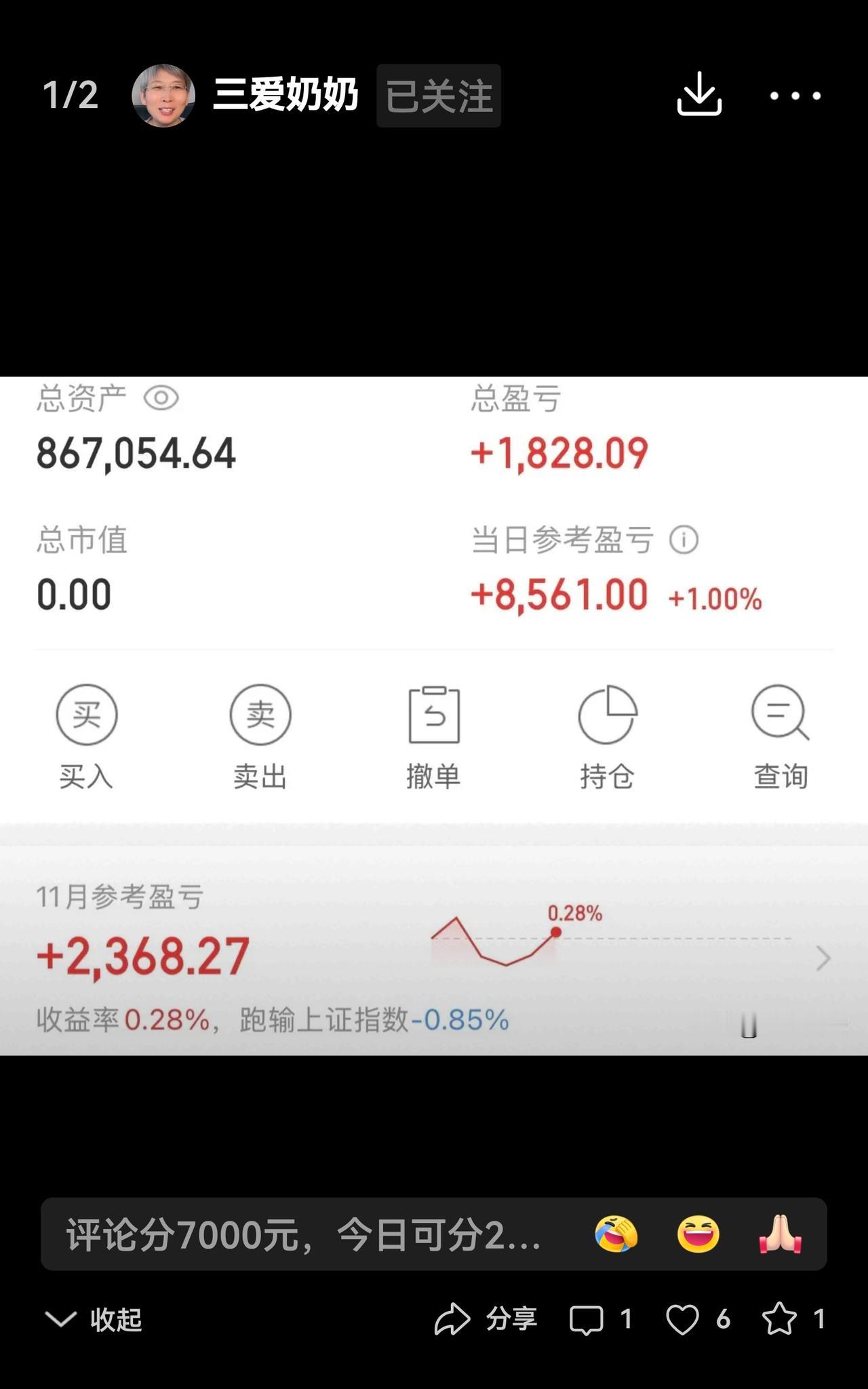 总算把这一刻盼来了,奶奶持有的股票熬了4天,终于迎来上涨行情,赚了8千多。虽说盈利不算多,但这可是打破了奶奶的短线交易记录。由此可见,适当捂股还是有道理的。 每只股票都有其独特的股性,有时持股不动能盈利,有时却会让亏损加剧。奶奶以后别太一根筋,就像李大霄老师讲的,买优质股票就不用怕股价下跌。