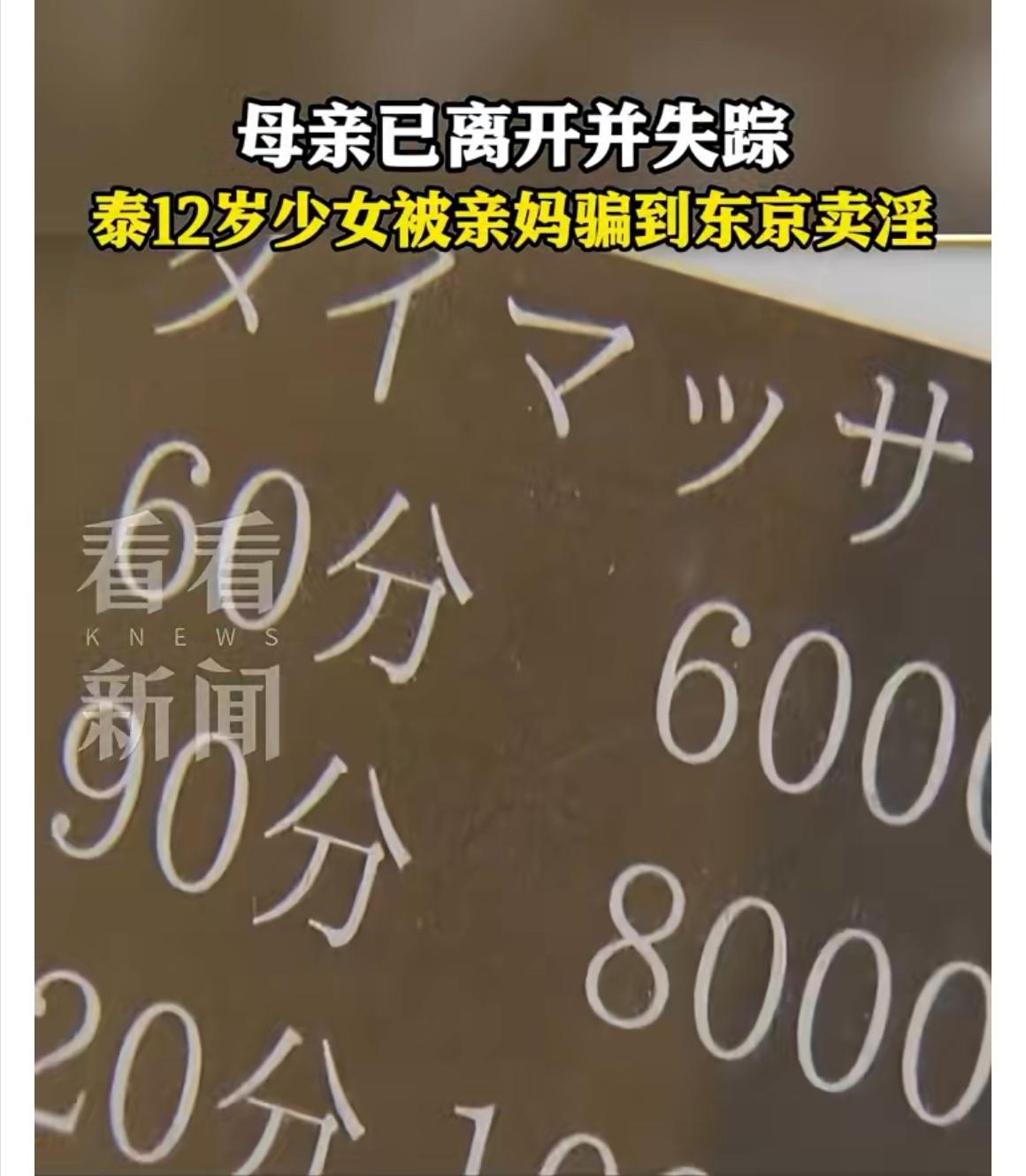 【12岁泰国少女被亲妈骗到日本卖淫,一个月竟被迫接客60次!】 太让人心寒了!