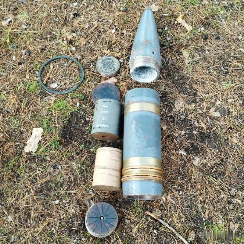 俄罗斯联邦武装力量装备的朝鲜M1989“谷山”(Koksan)自行火炮配套的170毫米炮弹(拆卸状态)。