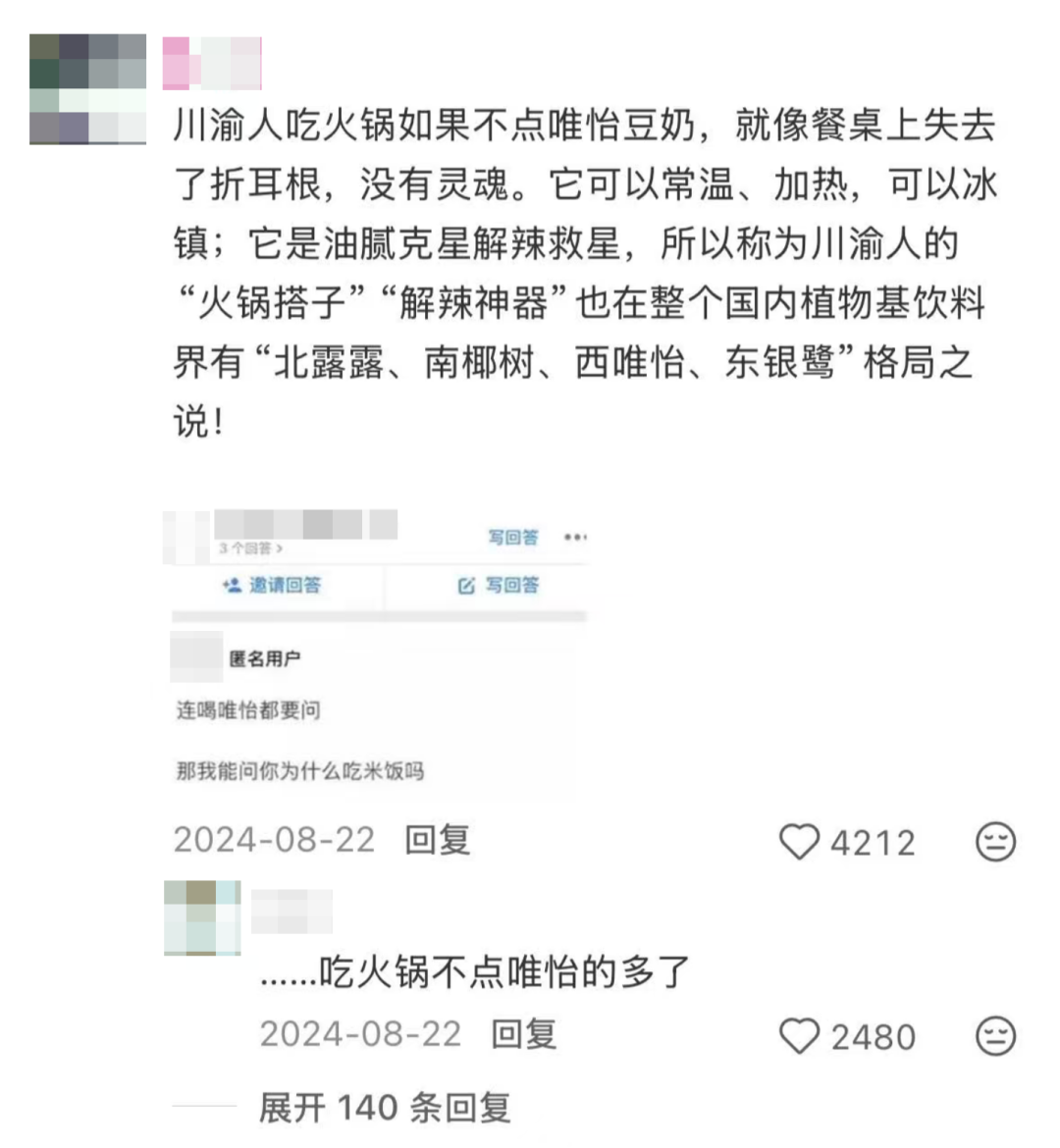 一方面,唯怡在西南地区的餐饮市场有这举足轻重的市场地位,这也是唯怡这么多年来一直称霸西南植物蛋白饮品市场的关键。另一方面,有了资本的加持,唯怡在市场拓展、营销等方面投入了更大的财力和物力,对终端动销也起到了一定的促进作用。