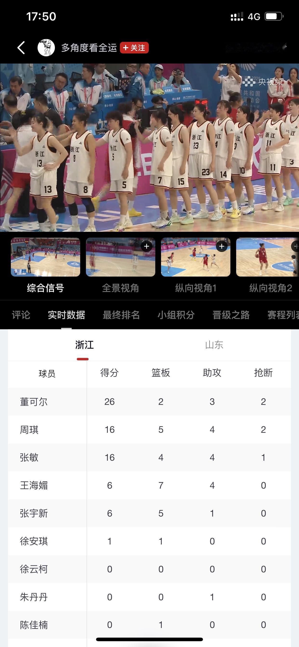 张子宇不在山东成年女篮!恭喜山东女篮以90:71战胜浙江女篮! 我之所以这样说,是刚刚在评论区看到一些网友使劲问:“张子宇怎么没上?”张子宇在山东U18女篮,今天是全运会U18女篮的第三个比赛日。 山东女篮开局落后过几分钟,后面逐渐追回,接着第二节大比分拉开,但是浙江女篮不是吃素的,第下半场疯狂反扑 还好山东女篮安静等球员够给力,稳住了阵脚,没有被浙江女篮的疯狂追分而产生慌乱,稳扎稳打,最终把胜利牢牢把握住! 山东女篮打进八强没问题,四强也可以拼一拼!