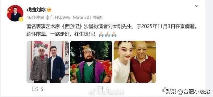 晒图笔记大赛著名表演艺术家、《西游记》沙僧扮演者刘大刚先生,于2025年11月3日在京病逝。先生的表演家喻户晓,沙僧形象成为不朽经典。向先生致敬,愿天堂无病痛,一路走好!🙏 爆料