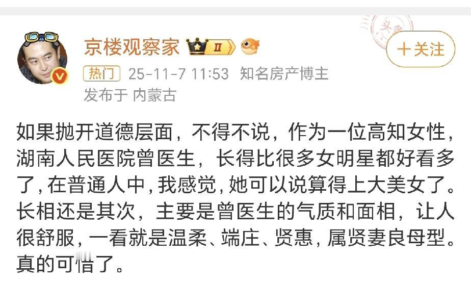 非常认同, 曾医生真的很漂亮,一看就是贤妻良母型。 所以至今还是很震惊,看着传统贤淑的她,气质温柔端庄的她,为什么会做出这样的事情,你身边也有这样的事吗?