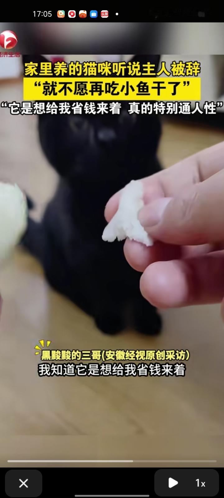 11月4日,廊坊三河市。家养的猫咪听说主人被辞了,就不愿意再吃小鱼干。主人心想,它是想让自己省钱,特别通人性。这件事要告诉养猫的朋友们,一定要好好对待它们,它们真的很通人性