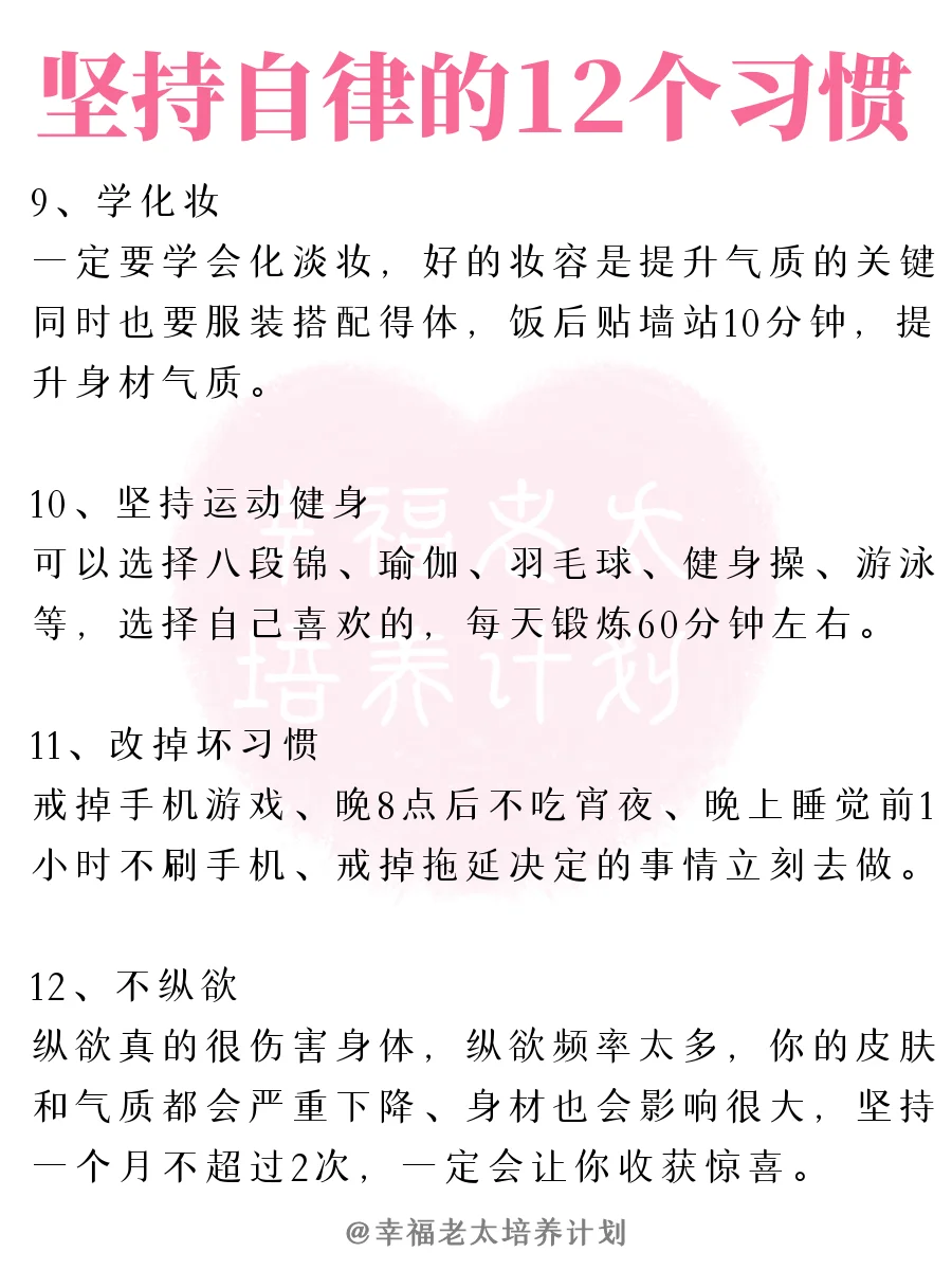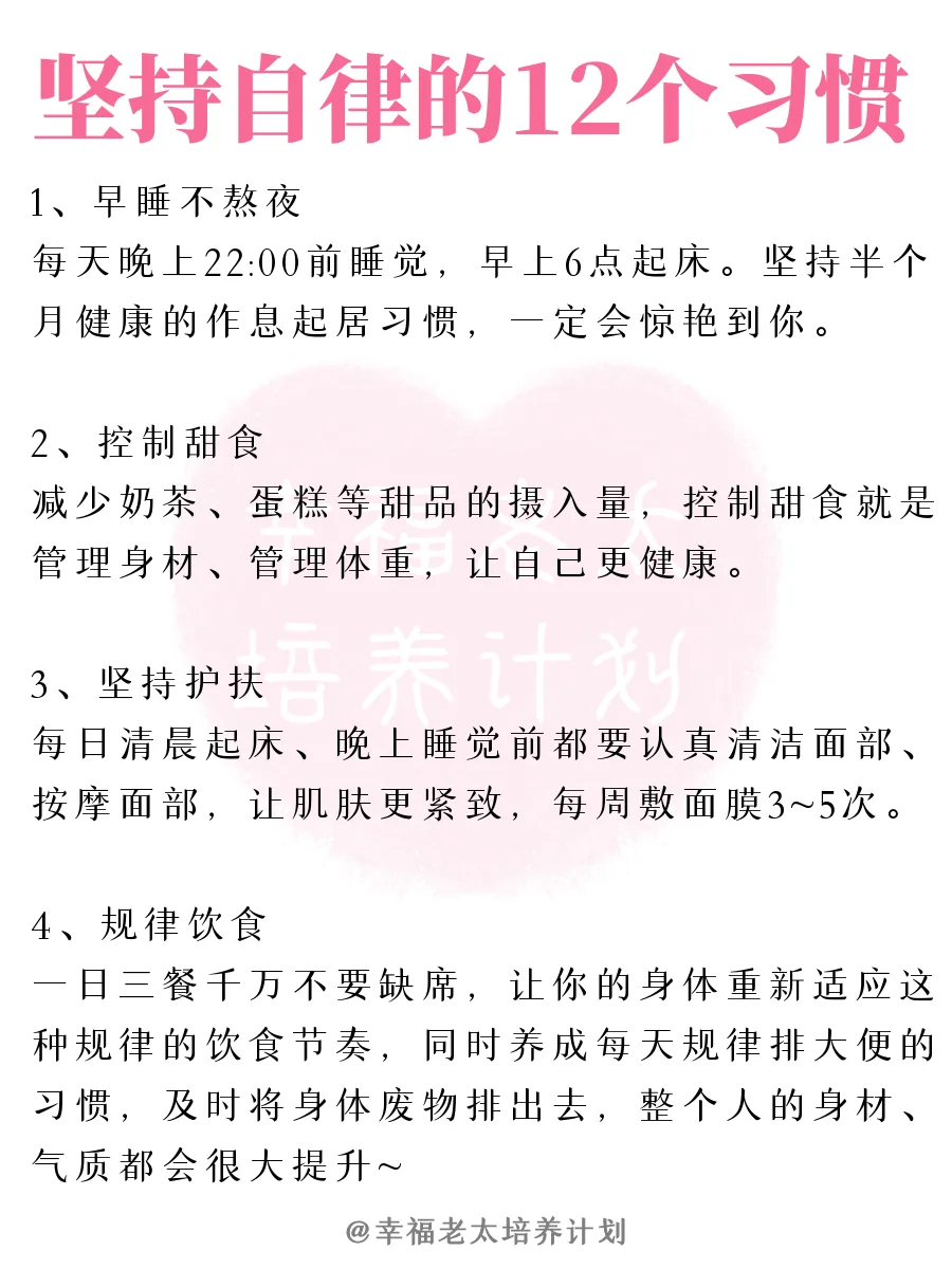 自律 偷偷变美惊艳所有人 女性健康 我的健康生活 开始自律 健康养生 好好生活大赛 女性成长 女生必看 幸福老太培养计划 新的一年开启自律生活!!! [PK]