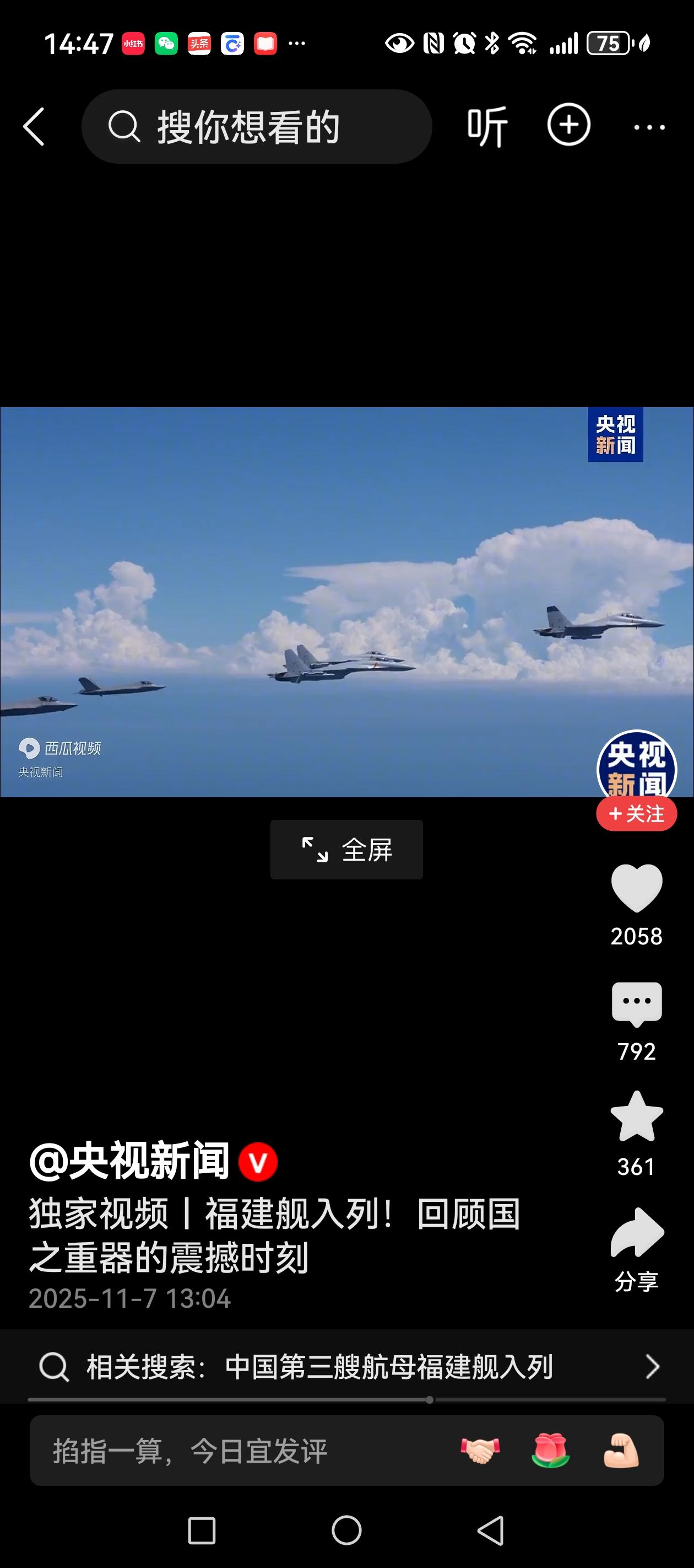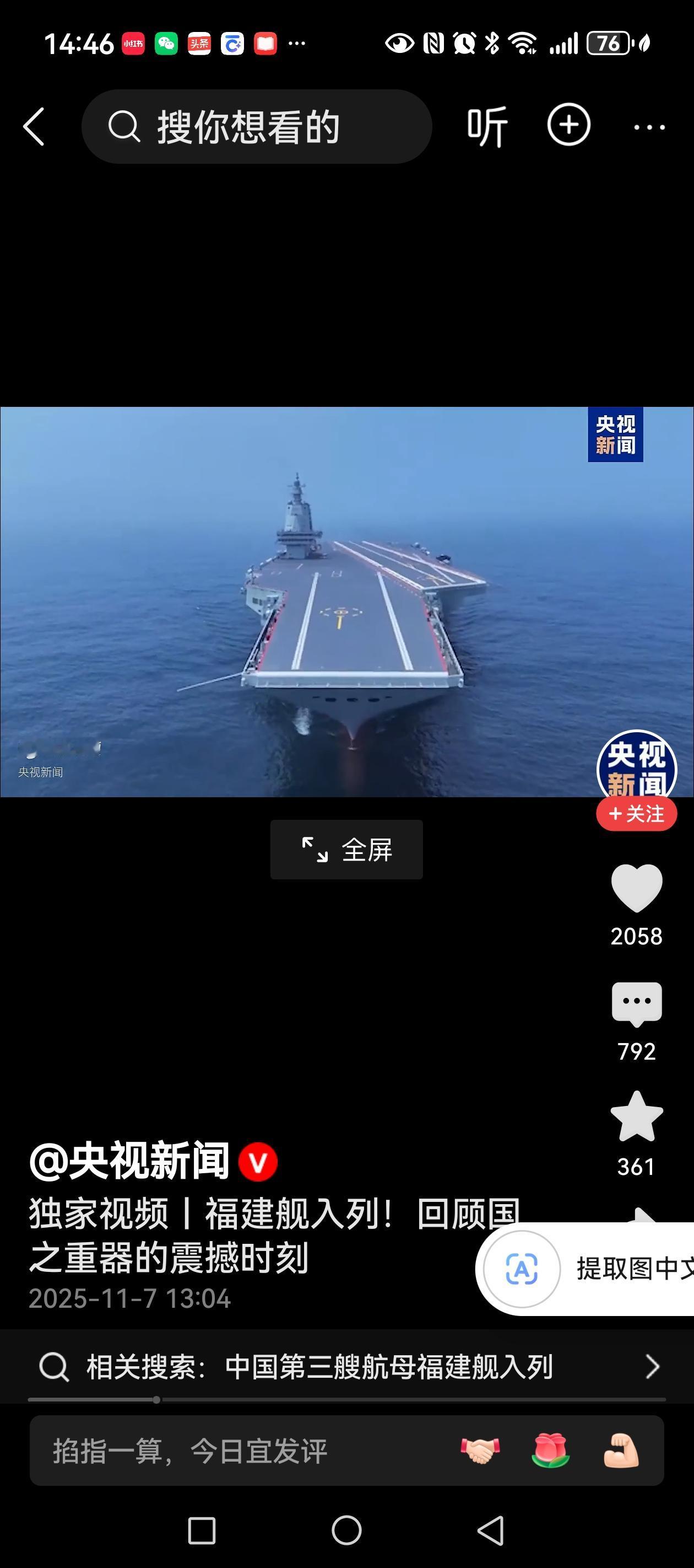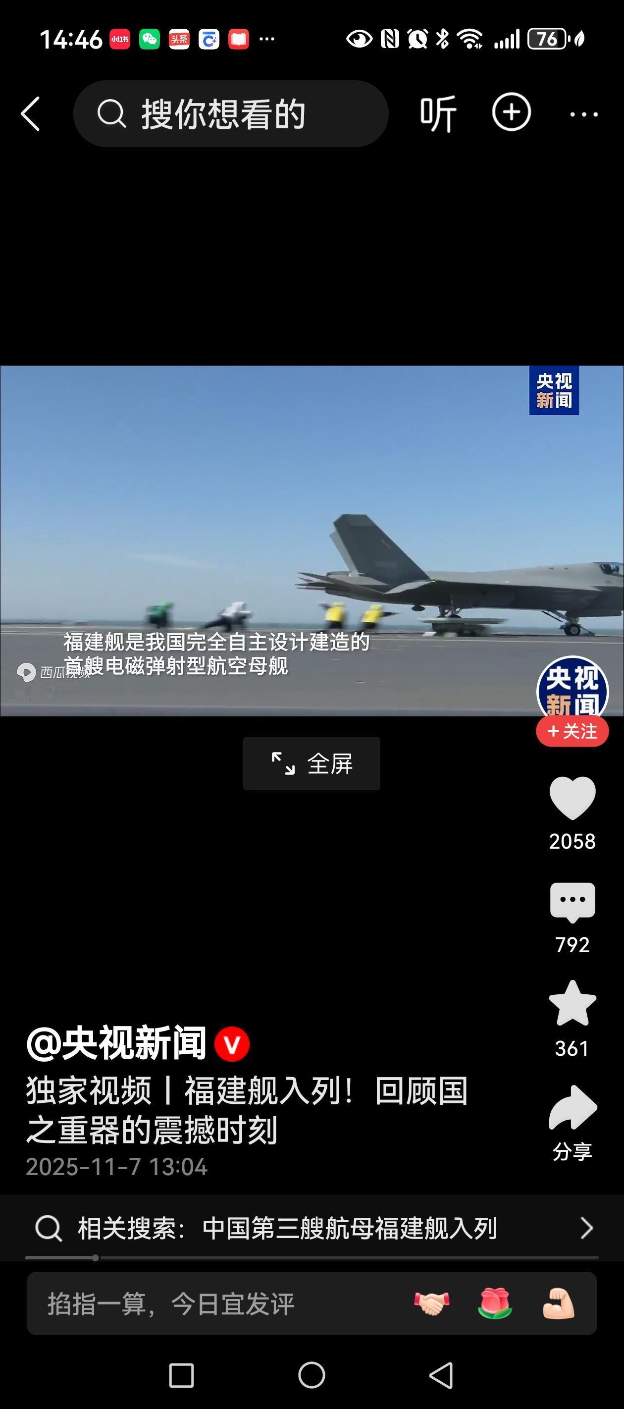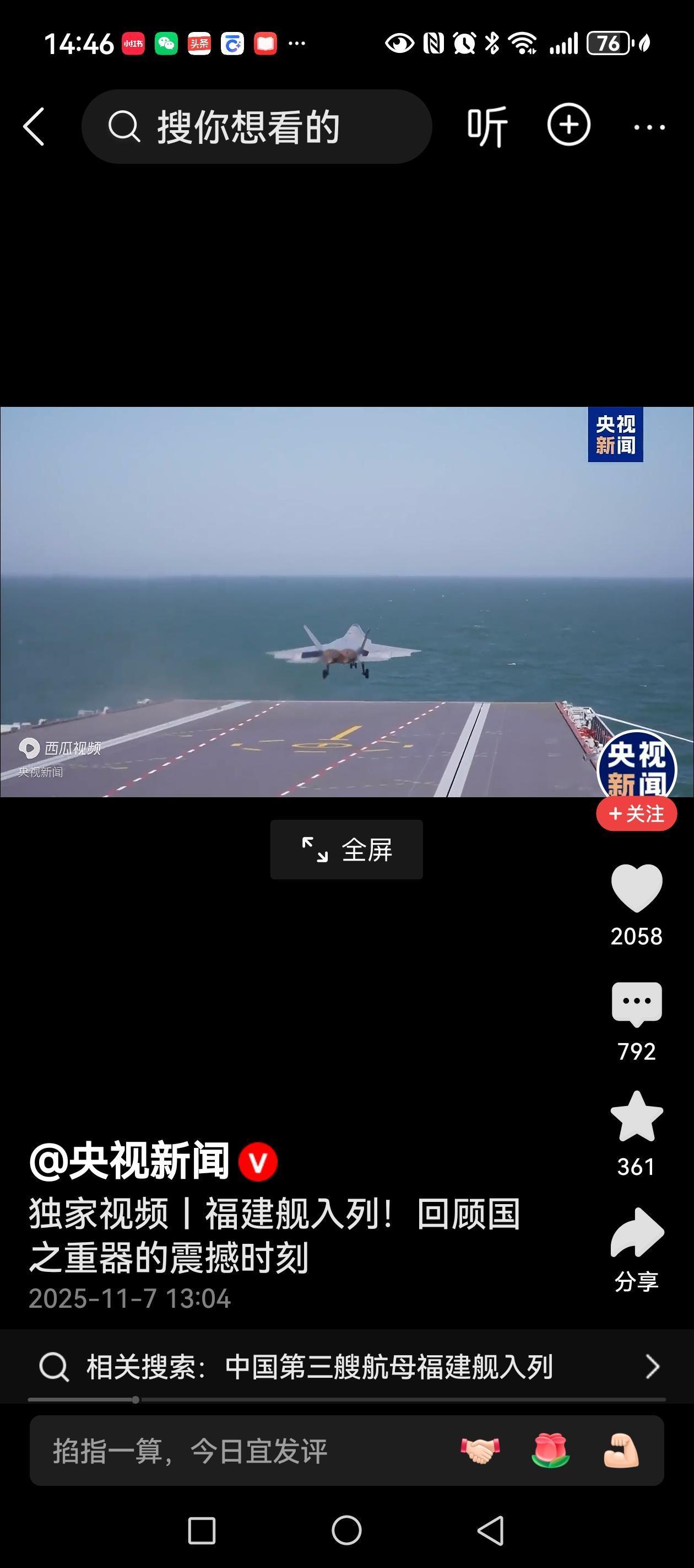 在军迷们的猜测和期待中,新闻来了,我国第三艘航母拥有电磁弹射的福建舰正式入列了!没有任何悬念,也没有过度渲染,一切都是那么顺理成章。人民海军威武!