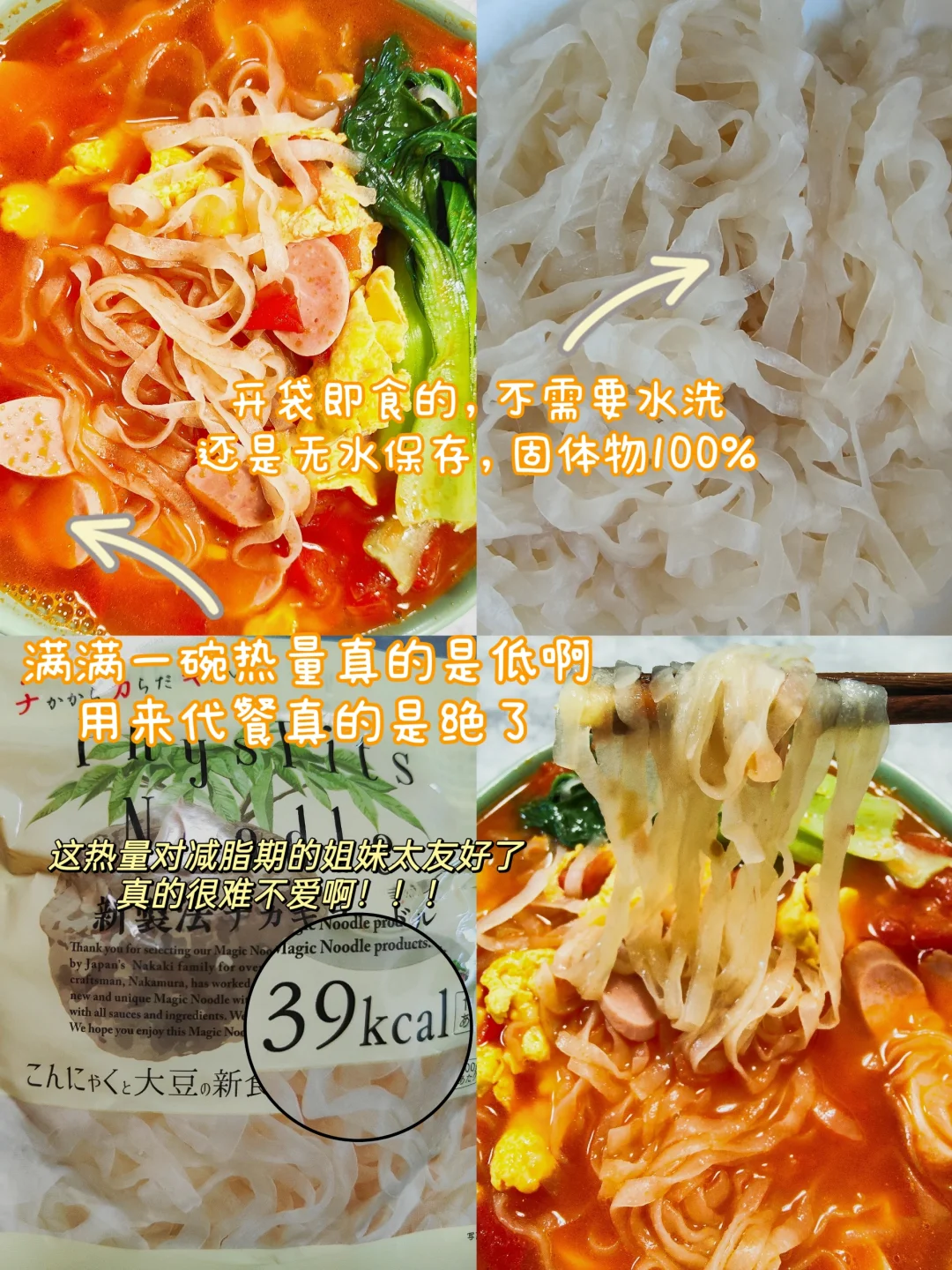 说到主食,最近小毒发现了一款适合减脂期的宝藏主食—体飞适魔芋面,这款魔芋面是我吃过的魔芋面中比较喜欢的,它吃起来没有碱味,开袋即食不需要再用水冲洗,口感我也喜欢很像新鲜手工面条,吃起来劲道爽滑,关键是热量低啊,吃完完全没有负担‼️