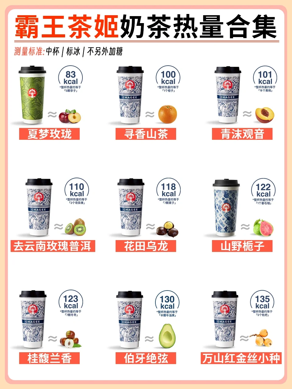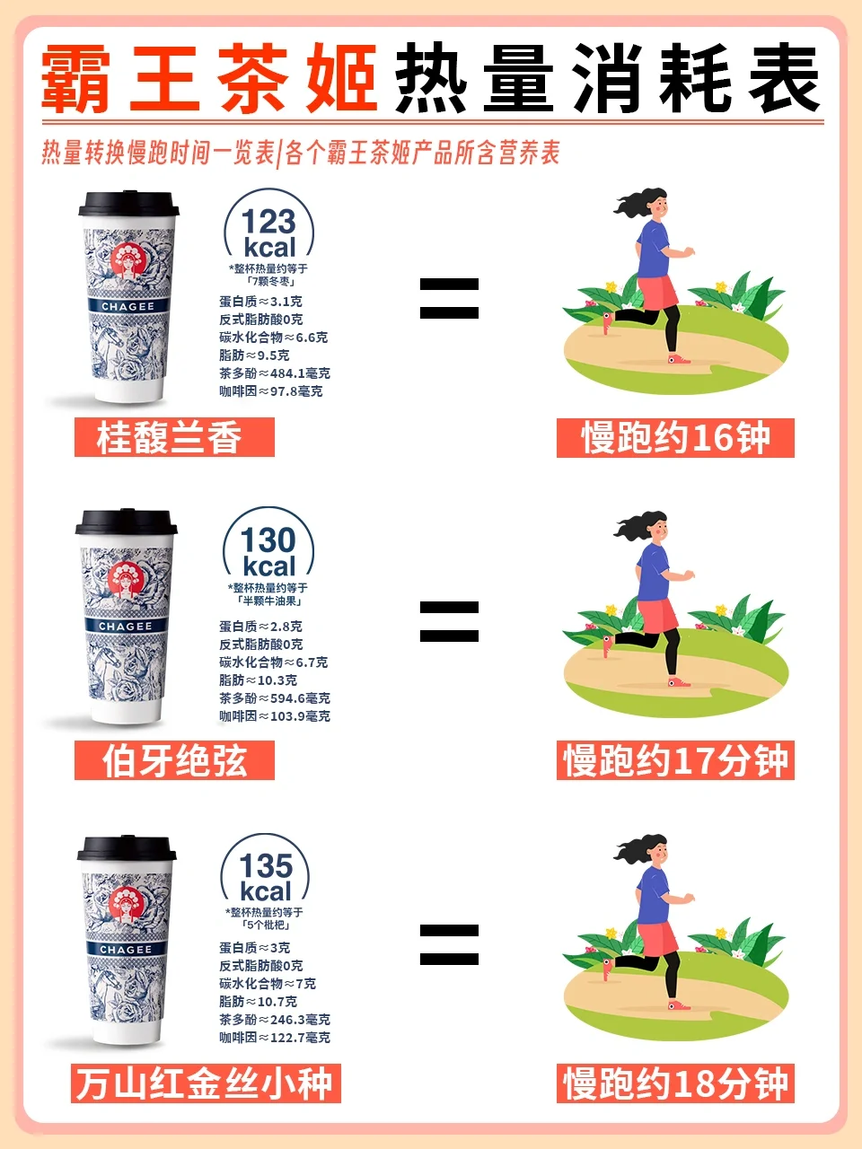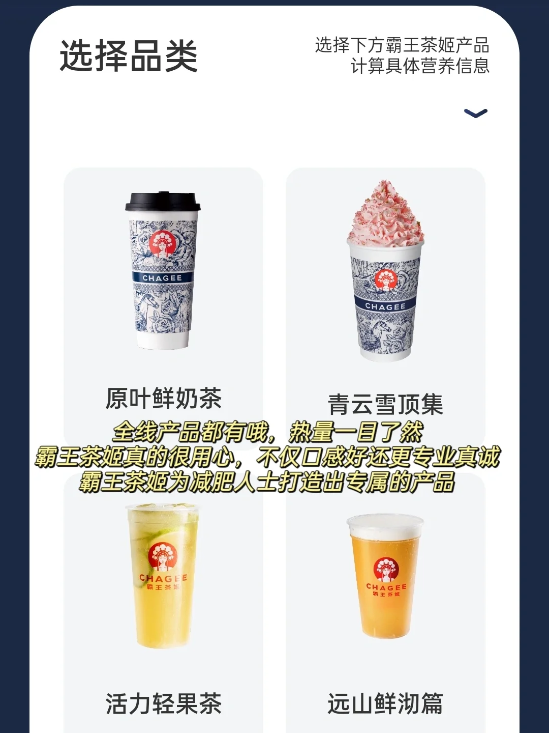 今天为大家分享一期霸王茶姬产品热量表,减脂期管不住嘴的姐妹码住,轻松让你实现霸王茶姬自由[派对R]
