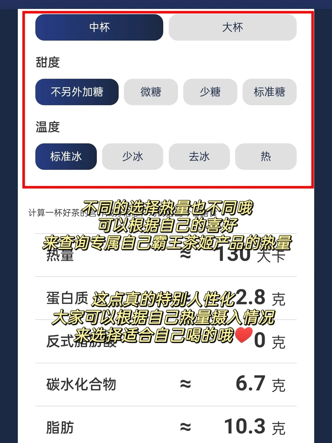 霸王茶姬新上线了“热量计算器”,这个功能真的是减脂人的福音啊,分分钟让实现霸王茶姬自由,再也不用担心会长胖了[赞R][赞R]