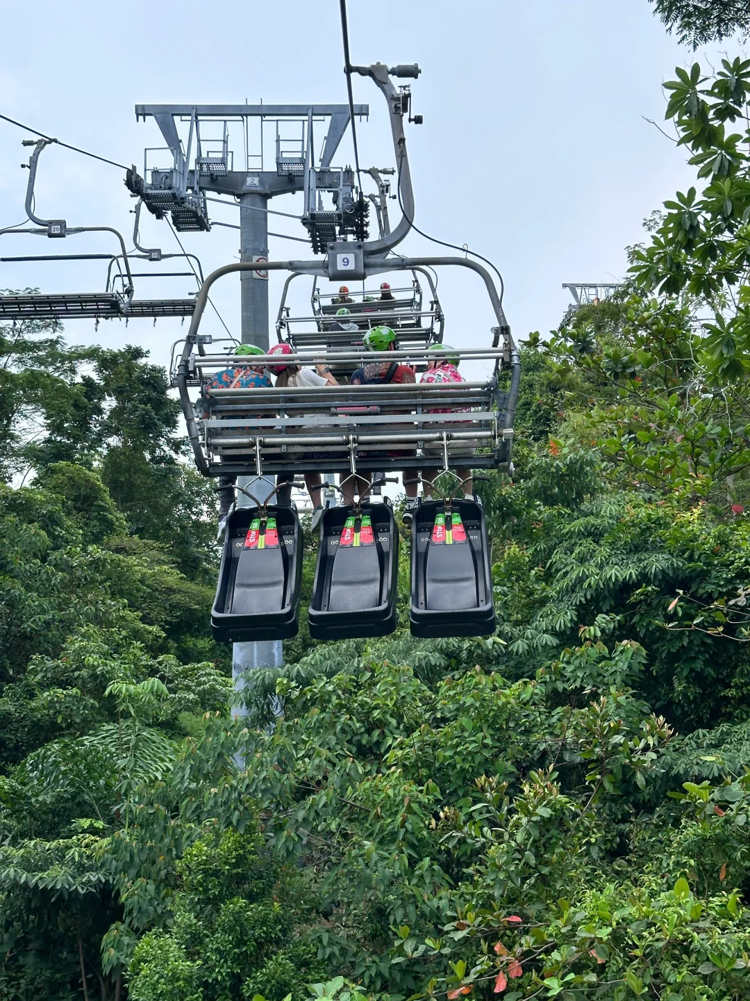 -上行:天际线吊椅 ,全开放式的吊椅超舒服,不用双脚爬山,还可以俯瞰圣淘沙海景(大概7分钟)