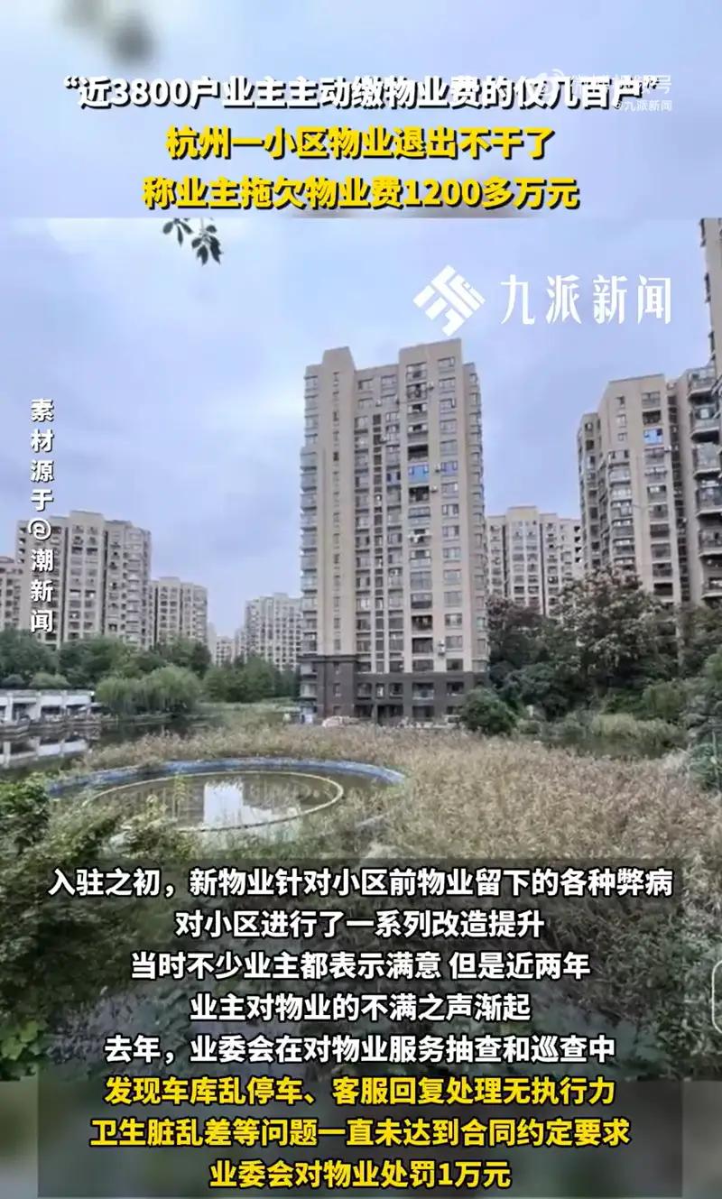 由于物业管理工作达不到业主的满意度,3800户业主仅几百户主动缴物业费,被欠物业费1200万物业退出不干了。 11月7日,据潮新闻:最近,杭州临平一小区物业向业主发了份《退出告知函》,声称,截至今年10月,该小区的物业费历史欠费总额累计高达1200余万元!物业与业主之间的矛盾解决不了的问题在不少地区鲜有发生,物业就干脆甩手不干退出了,冰冻三尺非一日之寒,面对这种老大难的难题,有关部门究竟什么态度,应该抓紧时间重视起来了。。。 根据11月7日潮新闻报道,杭州临平某小区因物业管理不善导致业主满意度低,仅有少部分业主主动缴纳物业费,欠费总额高达1200万元。由于物业与业主之间的矛盾难以解决,物业公司选择退出,造成管理真空。这一问题反映出物业管理中存在的深层次难题,也引发了社会对物业服务质量和管理责任的关注。 面对这种情况,有关部门应当采取积极措施,包括: 加强监管与责任追究:完善物业管理法律法规,强化对物业企业的监管,确保其责任落实到位。 推动业主自治与多方参与:鼓励业主成立业主委员会,增强业主自治能力,提升物业管理的透明度和公信力。 建立应急管理机制:对物业退出或出现管理空缺的情况,建立及时的应对机制,确保小区公共事务正常运行。 引导优质物业企业入驻:吸引有实力和信誉的物业企业进入市场,改善物业服务质量。 强化宣传教育:提高业主的法律意识和维权意识,营造良好的物业管理氛围。 物业管理关系到居民的切身利益,亟需相关部门高度重视,采取有效措施遏制类似问题的发生,确保居民的居住环境安全、舒适和有序。物业费用 物业费催缴 物业管理工作达不到业主的满意度