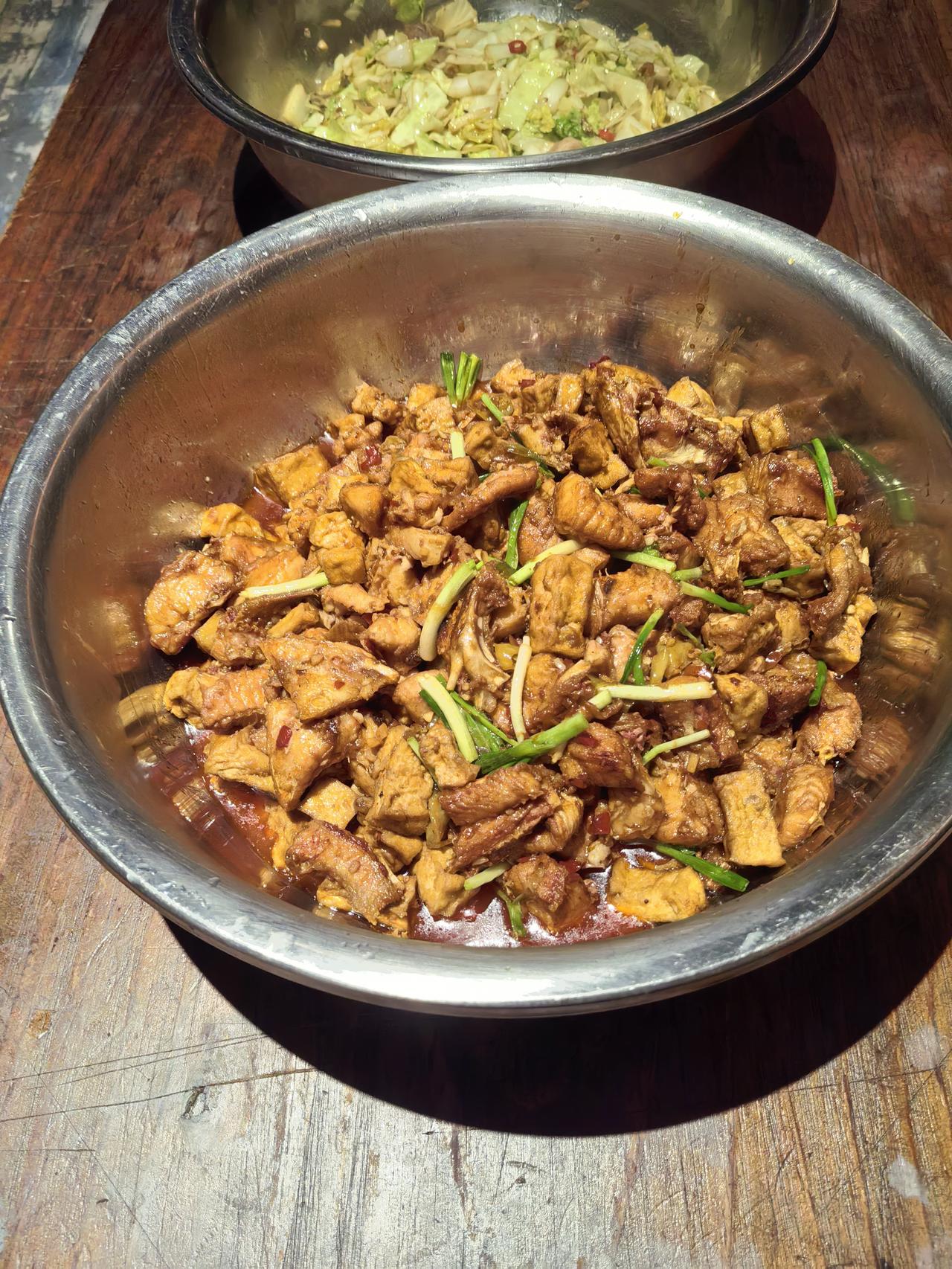 都说厨师下班后就不想做饭了,但我们对吃的讲究可一点没少。结束一天忙碌,后厨师傅们围坐一起的这顿工作餐,才是一天中最放松、最治愈的时刻。 今天就给大家看看我的晚餐工作餐——豆腐烧鮰鱼块、五花肉炒包菜,再加一碗热乎乎的紫菜蛋汤。简单三样,却比任何山珍海味都让人满足。 今日晚餐菜单 - 豆腐烧鮰鱼块 这道菜绝对是今天的“下饭王”。鮰鱼块先煎至两面金黄,锁住鱼肉的鲜嫩。再和老豆腐一起,用秘制酱料慢炖。豆腐吸饱了鱼肉的鲜和酱汁的浓,软嫩入味;鱼肉则保持着入口即化的口感,鱼刺还少,简直是懒人福音。 - 五花肉炒包菜 一道看似普通的家常菜,最能体现火候功夫。肥瘦相间的五花肉先煸出油脂,逼出香味,再下手撕的包菜大火快炒。起锅前点上醋,那股子锅气混着酸甜口,爽脆开胃,解腻又下饭。 - 紫菜蛋汤 忙碌一天,就想喝点热乎的。这碗紫菜蛋汤就是最好的慰藉。蛋花打得均匀,紫菜的鲜和葱花的香完美融合,简单清淡,刚好中和了前两道菜的浓郁,暖心又暖胃。 其实,真正的美味不一定需要复杂的食材和工序。就像这顿工作餐,都是些家常食材,但因为是自己人做的,用料实在,火候到位,吃起来就特别有滋味。 工作餐的幸福感,就是这么简单直接。 这几道菜看着是不是就很有食欲?其实做法不难,要不要我把其中最下饭的豆腐烧鮰鱼块的家常做法分享给你,让你在家也能轻松复刻?
