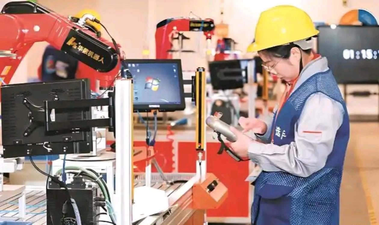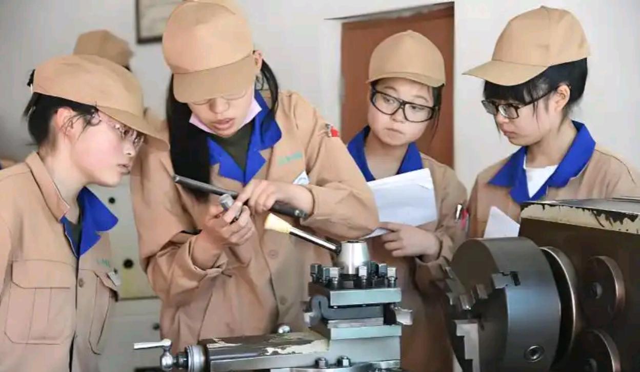 穿着统一工装的学生们,围在数控机床或高铁模拟驾驶台前,眼神专注,手上的操作一丝不苟。