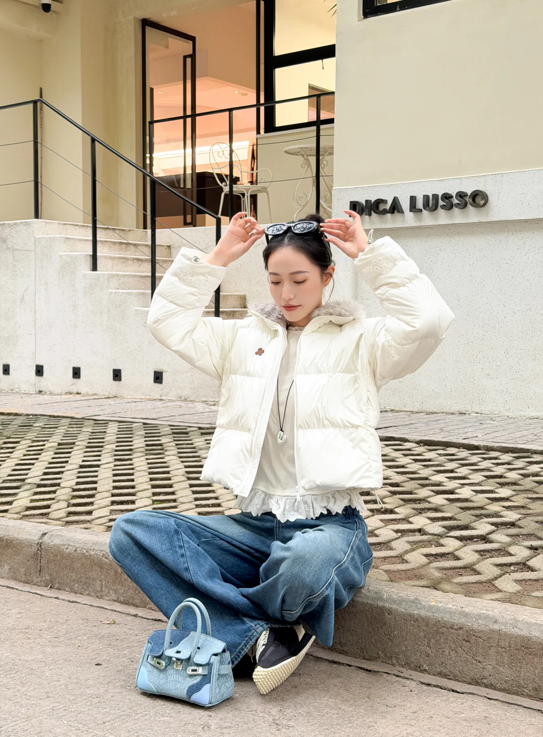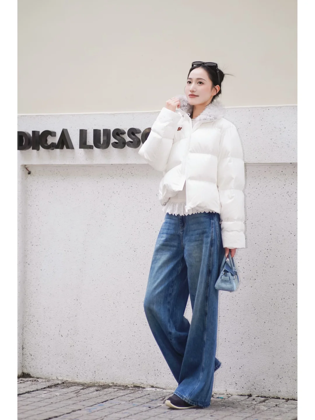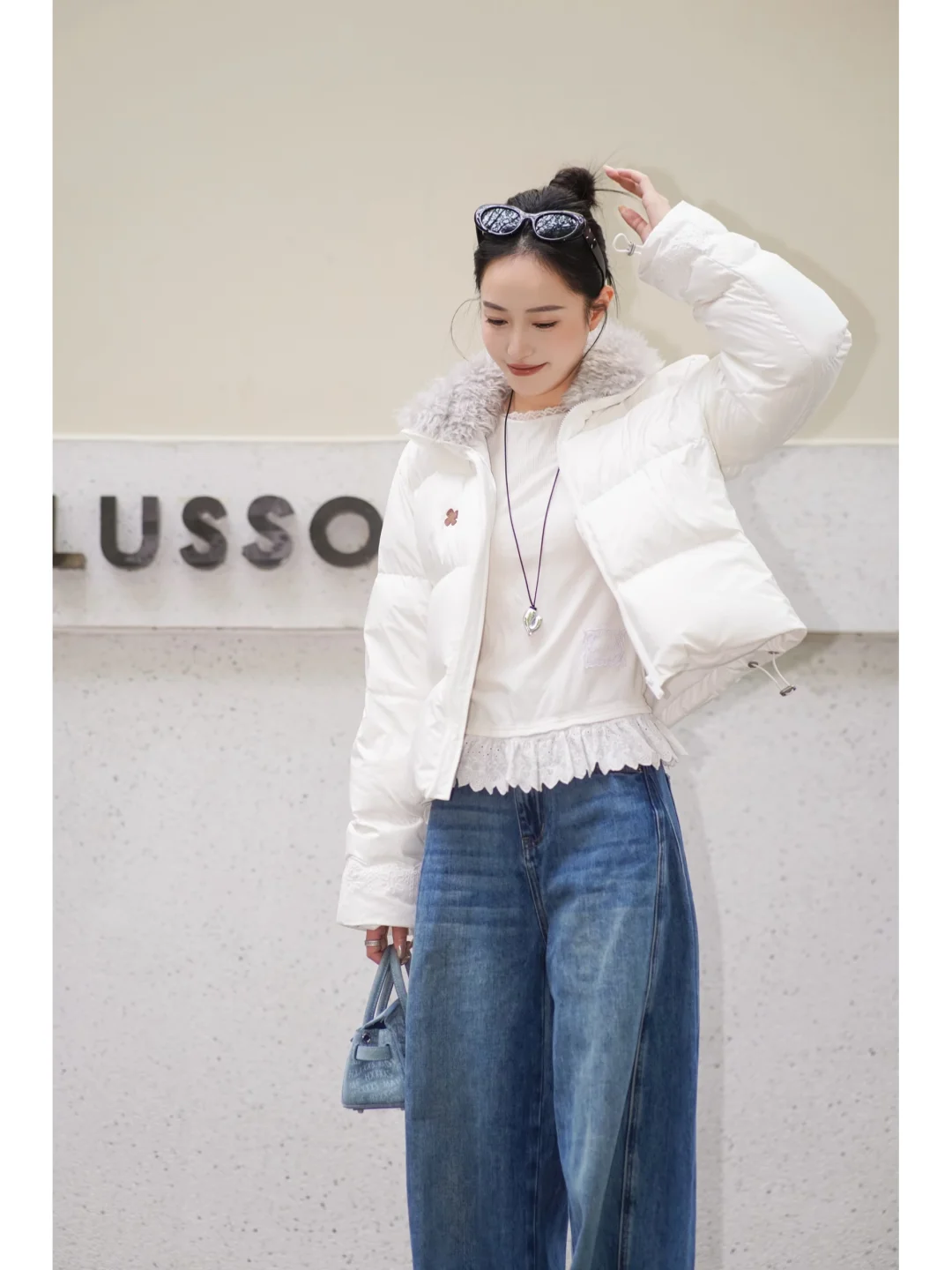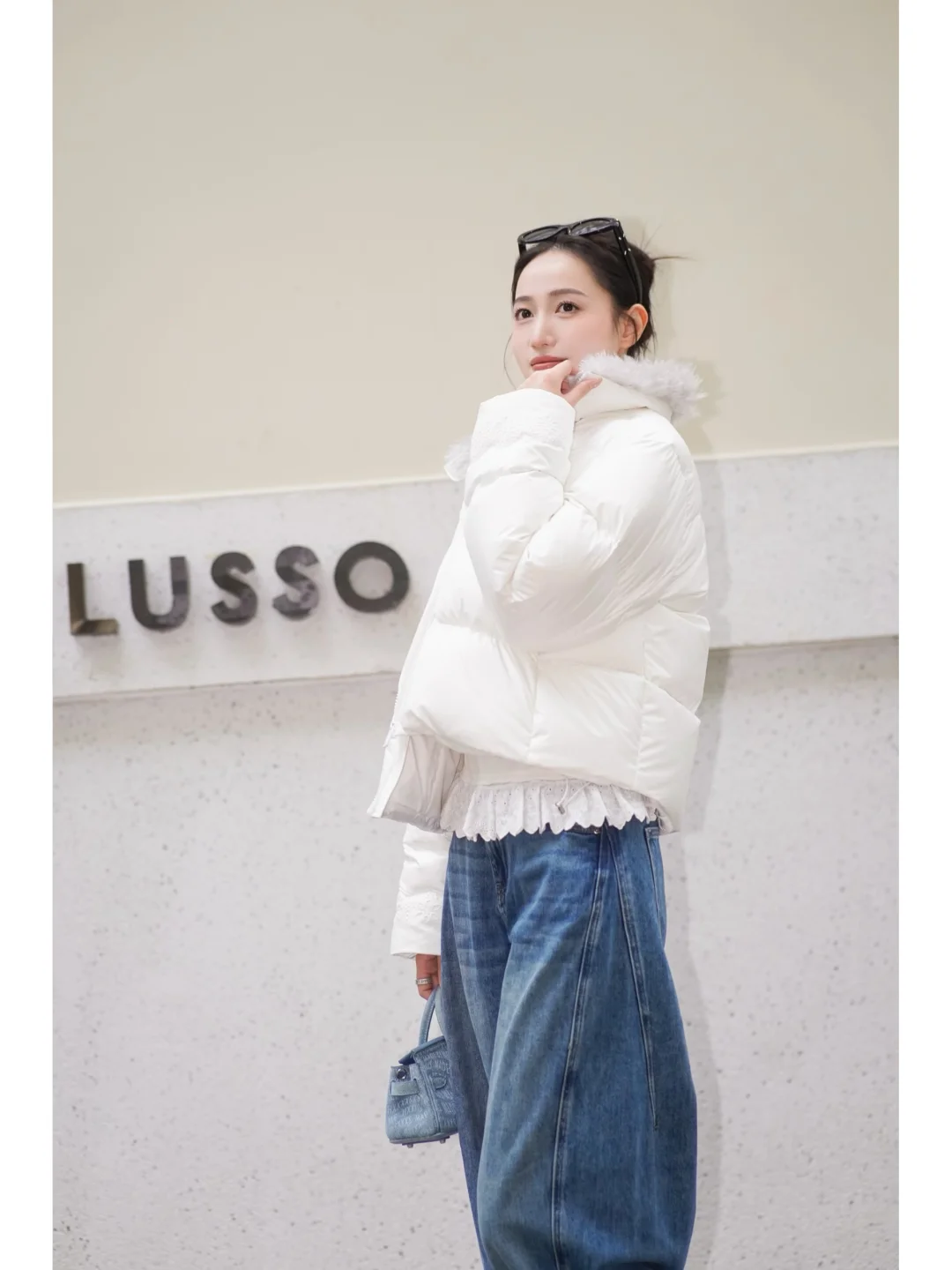 白色的小短款 轻盈又保暖 毛毛领软fufu的~