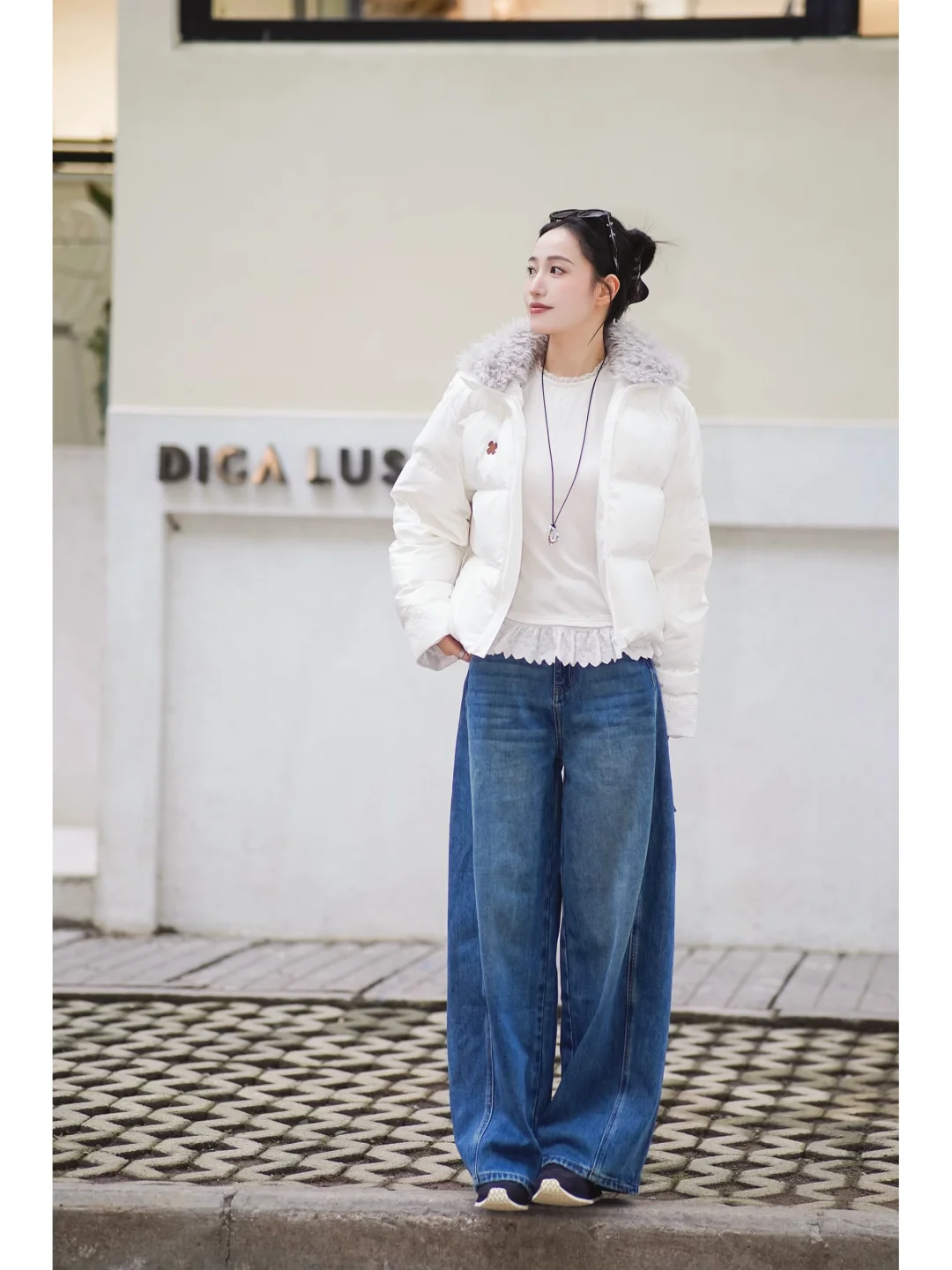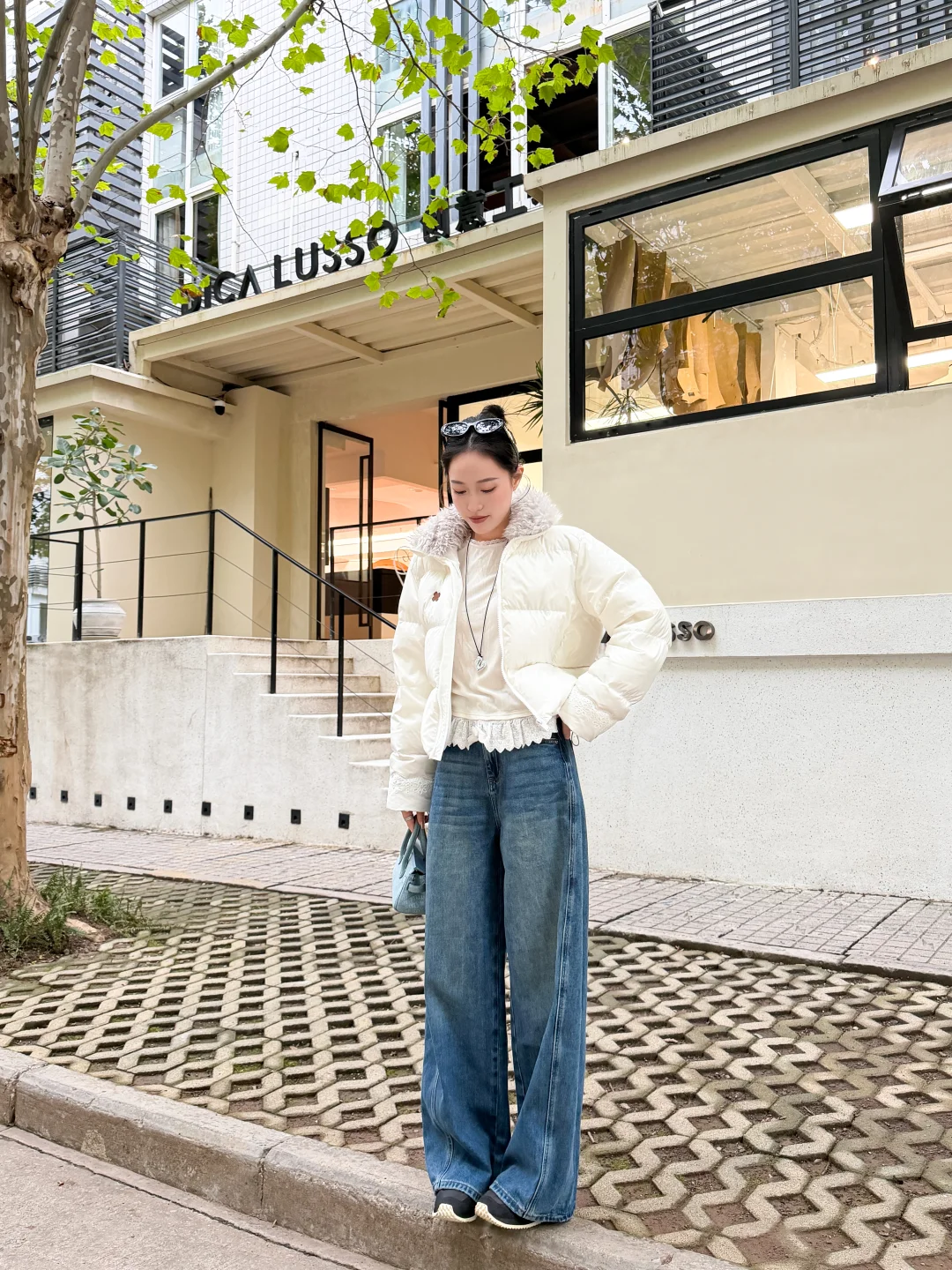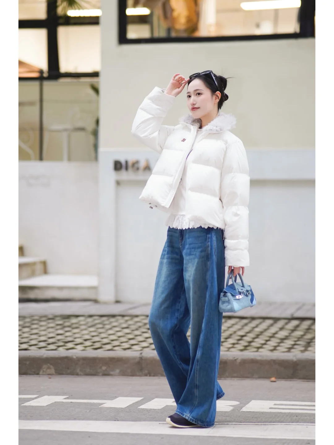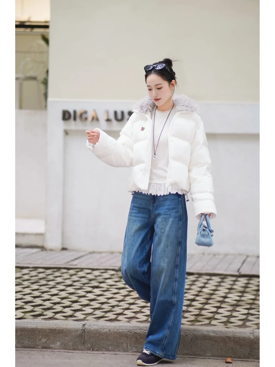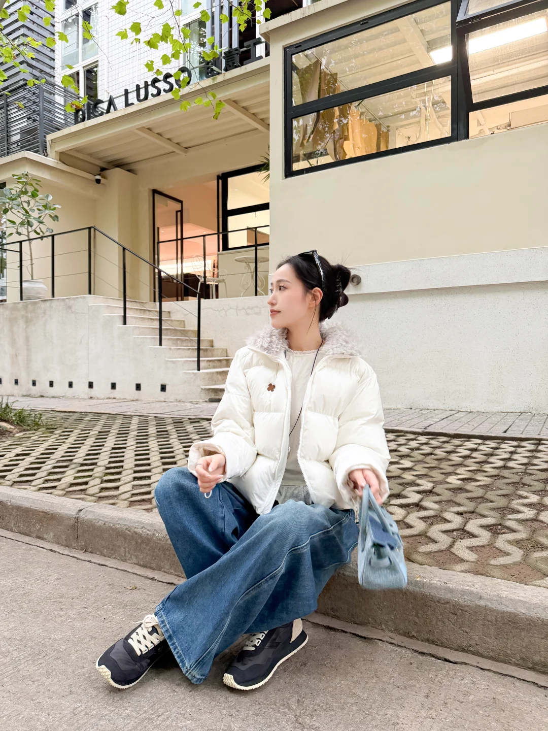白色的小短款 轻盈又保暖 毛毛领软fufu的~