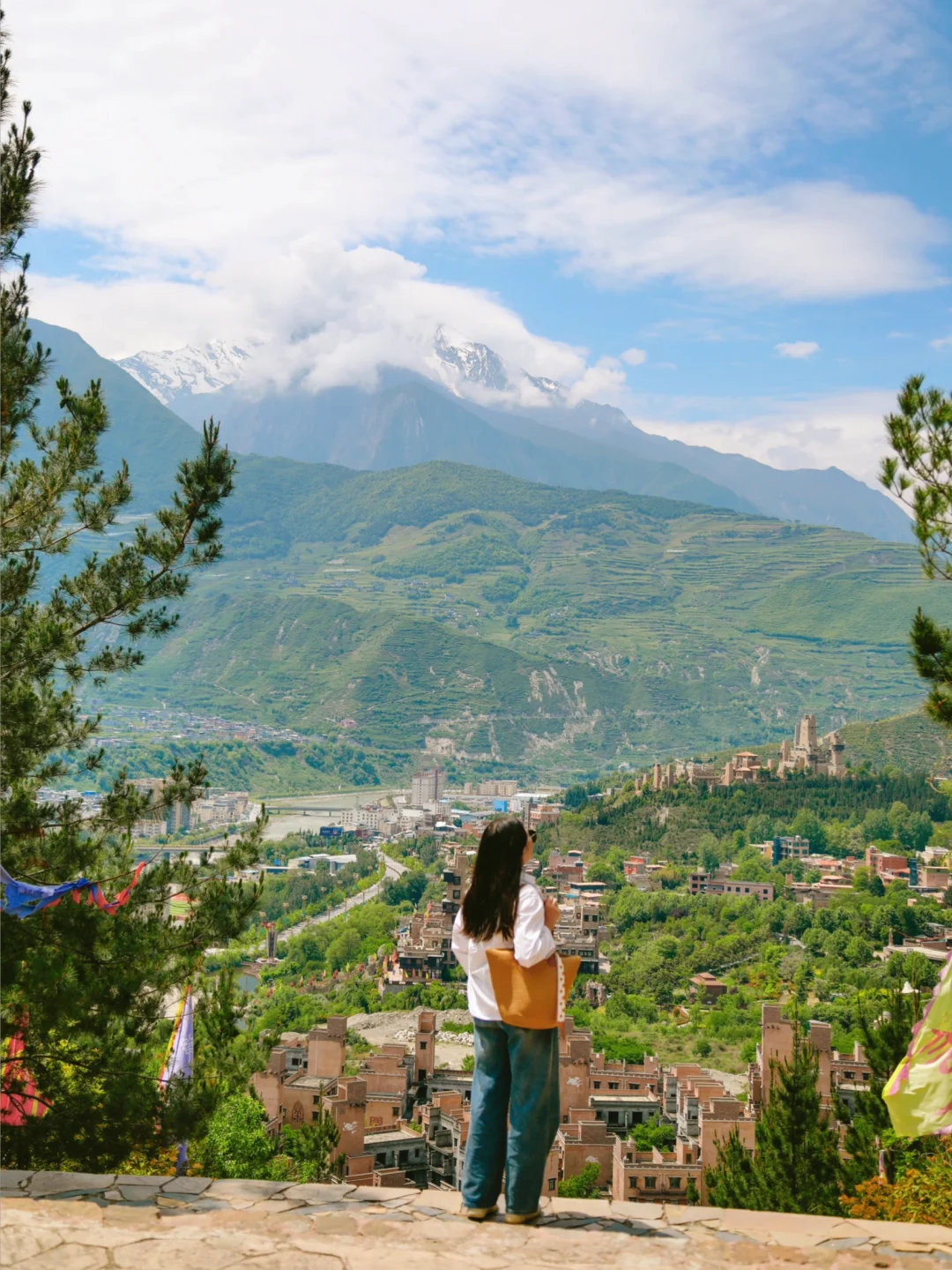 游览完古羌城就可以步行🚶♀️30分钟左右去碉楼📷碉楼在山顶,上面风景好直对雪山🏔️