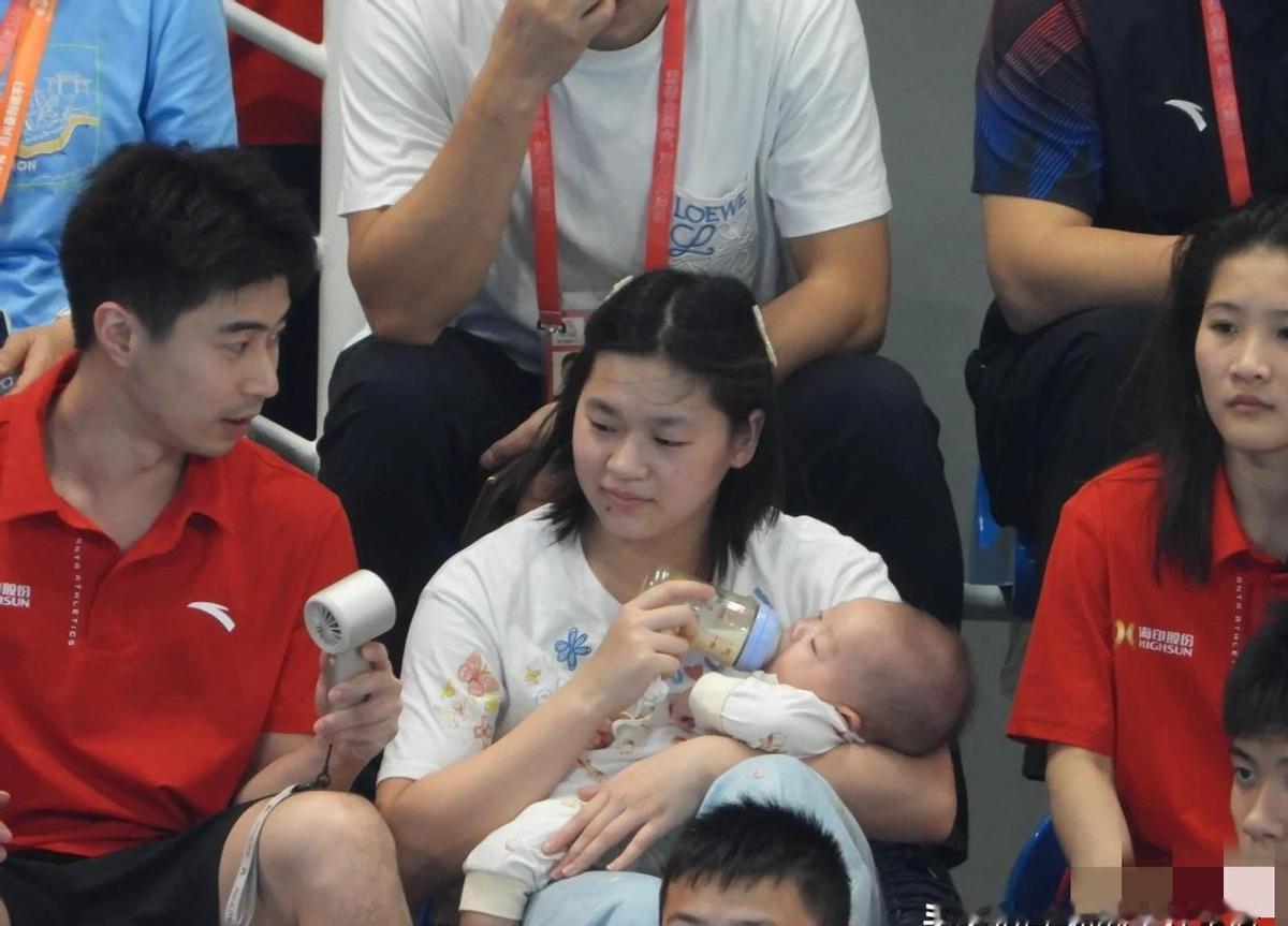 全红婵在看台喂奶,手稳得像在做空翻。 谢思埸蹲边上,一句话没说,眼神却替她扛了半