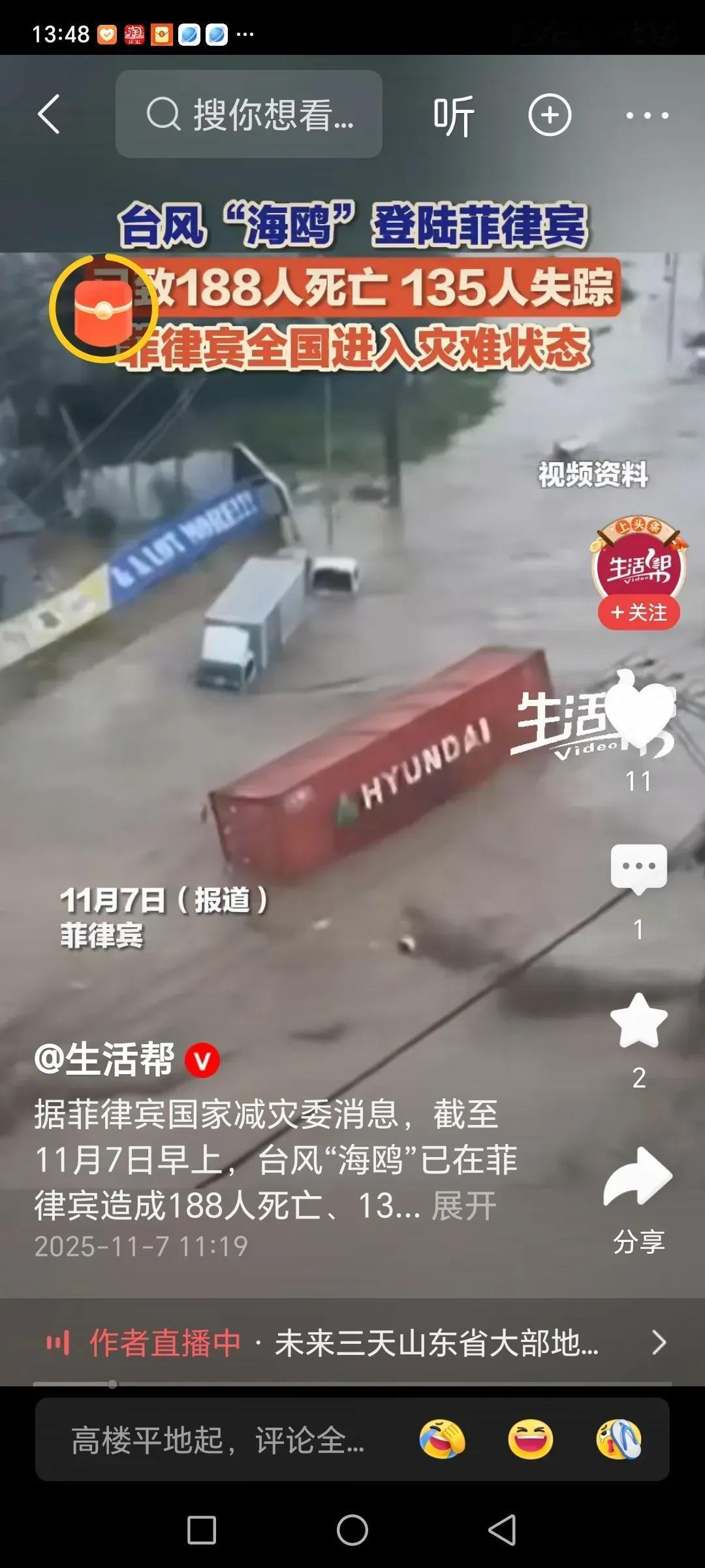 菲律宾的局势现在越来越恶化了。 11月8日,菲律宾灾害管理机构证实,台风“海鸥”已经造成菲律宾至少188人死亡,135人失踪,61个市镇出现大面积停电,超过20万人被紧急疏散。 雪上加霜的是,菲律宾这次灾害,全世界都保持了沉默 有网友评论说: 1,熊猫家现在的姿态就挺好,相信菲律宾政府和人民能度过灾难 2,老美不是他干爹吗,这么大的灾难,难道干爹都不管吗,这当的也太不够格了 3,如果美欧日爹都不帮,那既是人品也是天意 晒图笔记大赛