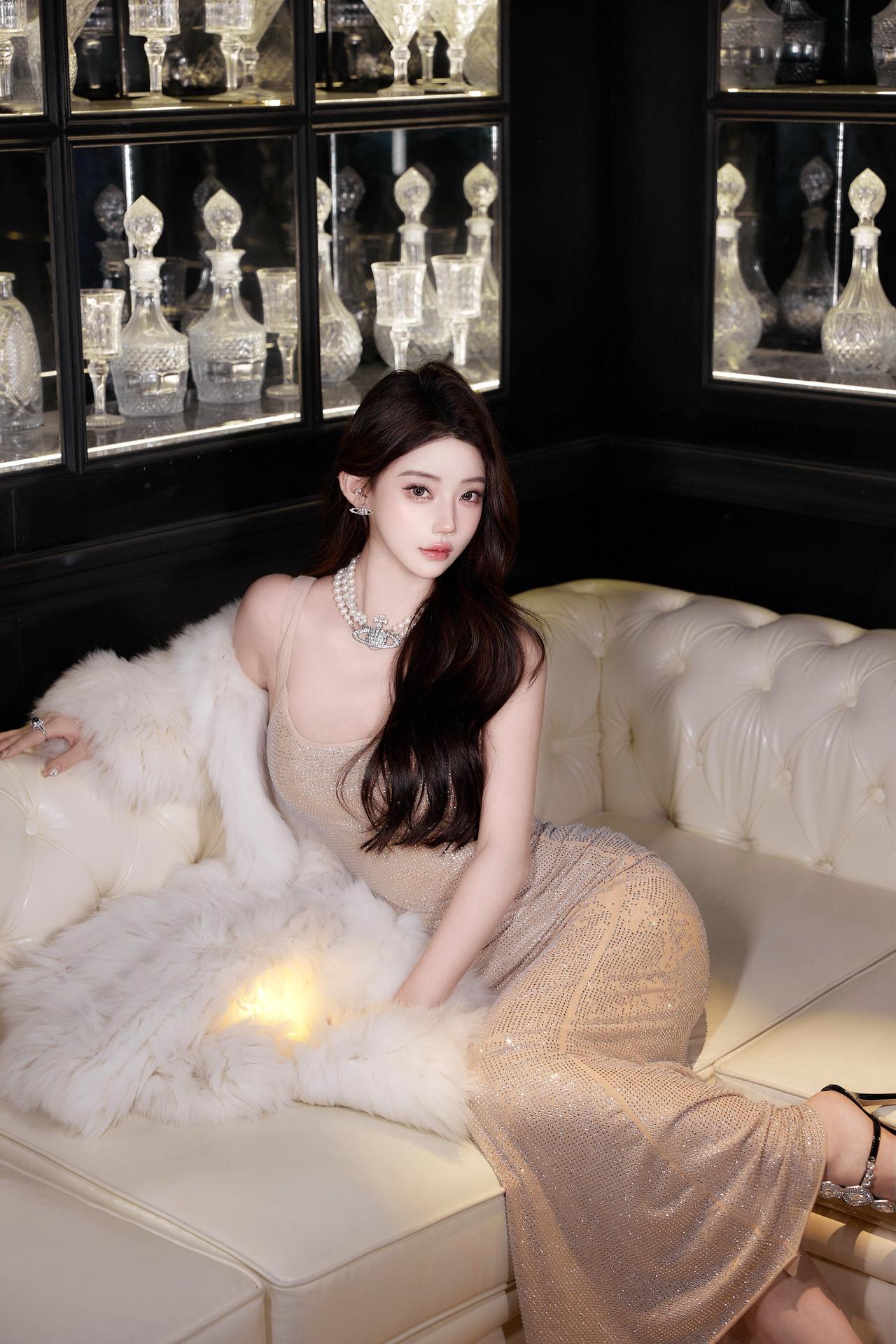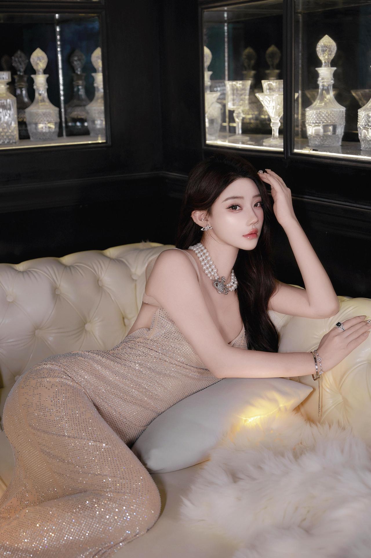 上联:裸粉裙装衬粉壁,温婉如诗 下联:金枝项链映玉肌,优雅若画 对联 对对联飞花