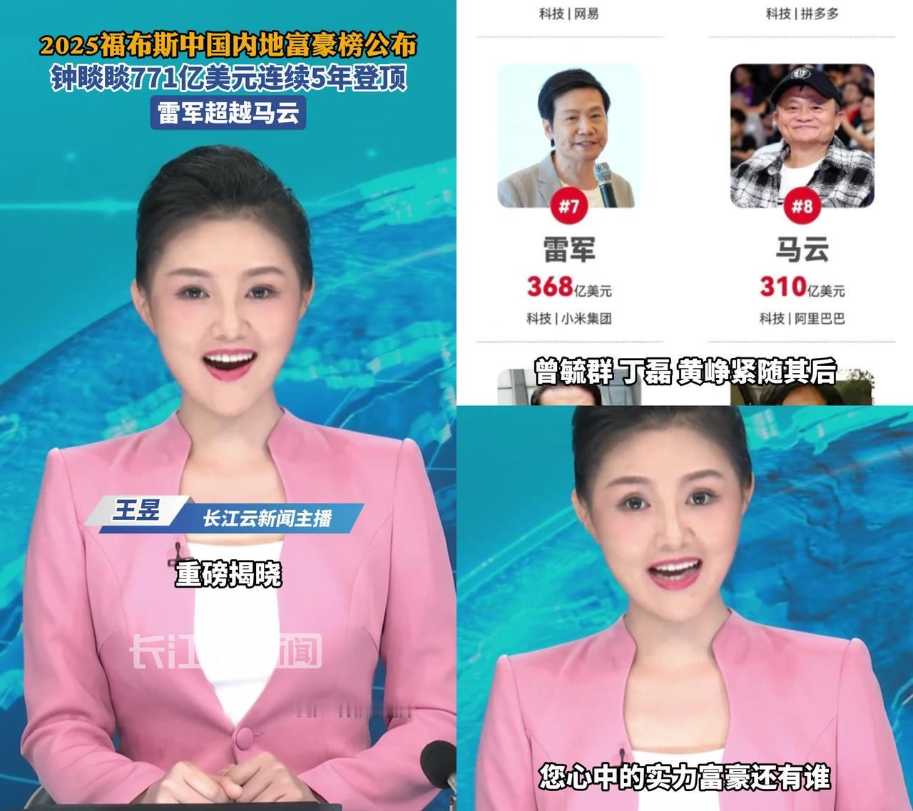 今早咬开农夫山泉瓶盖的瞬间,突然刷到个离谱消息, 卖这瓶2块钱水的钟睒睒,居然连续5年稳坐中国首富!雷军还超了马云,排到前面。 有人骂:“卖水的赚771亿,任正非才7元,但任正非是真英雄!” 有人念马云好:“没有支付宝,我现在还在银行排队存钱!” 还有人算小账:“一瓶水成本不到1块,卖2块赚5毛,原来天天喝的水藏着密码!” 首富的数字哪有那么重要, 能把日常事做到极致的,懂赚咱们的钱; 但把家国责任扛在肩上的,才是刻在心里的顶流。 大家觉得,卖水的首富和做芯片的英雄,哪个更让你佩服?