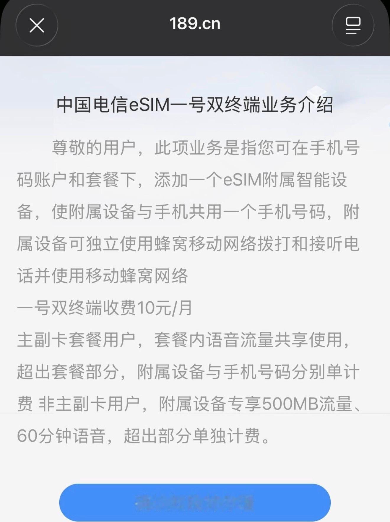 电信已经支持Apple Watch端重开一号双端eSIM服务,三大开启条件: