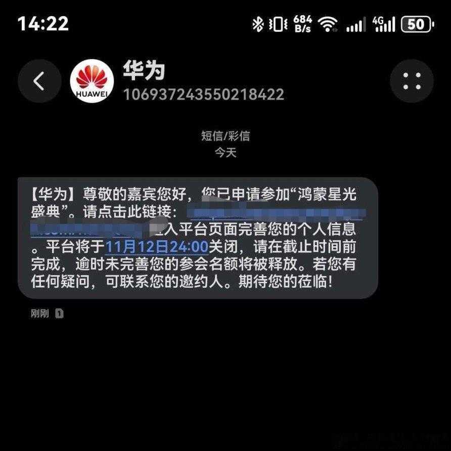 小伙伴已经收到央视鸿蒙星光盛典的门票了[流鼻血]我的短信还没收到。