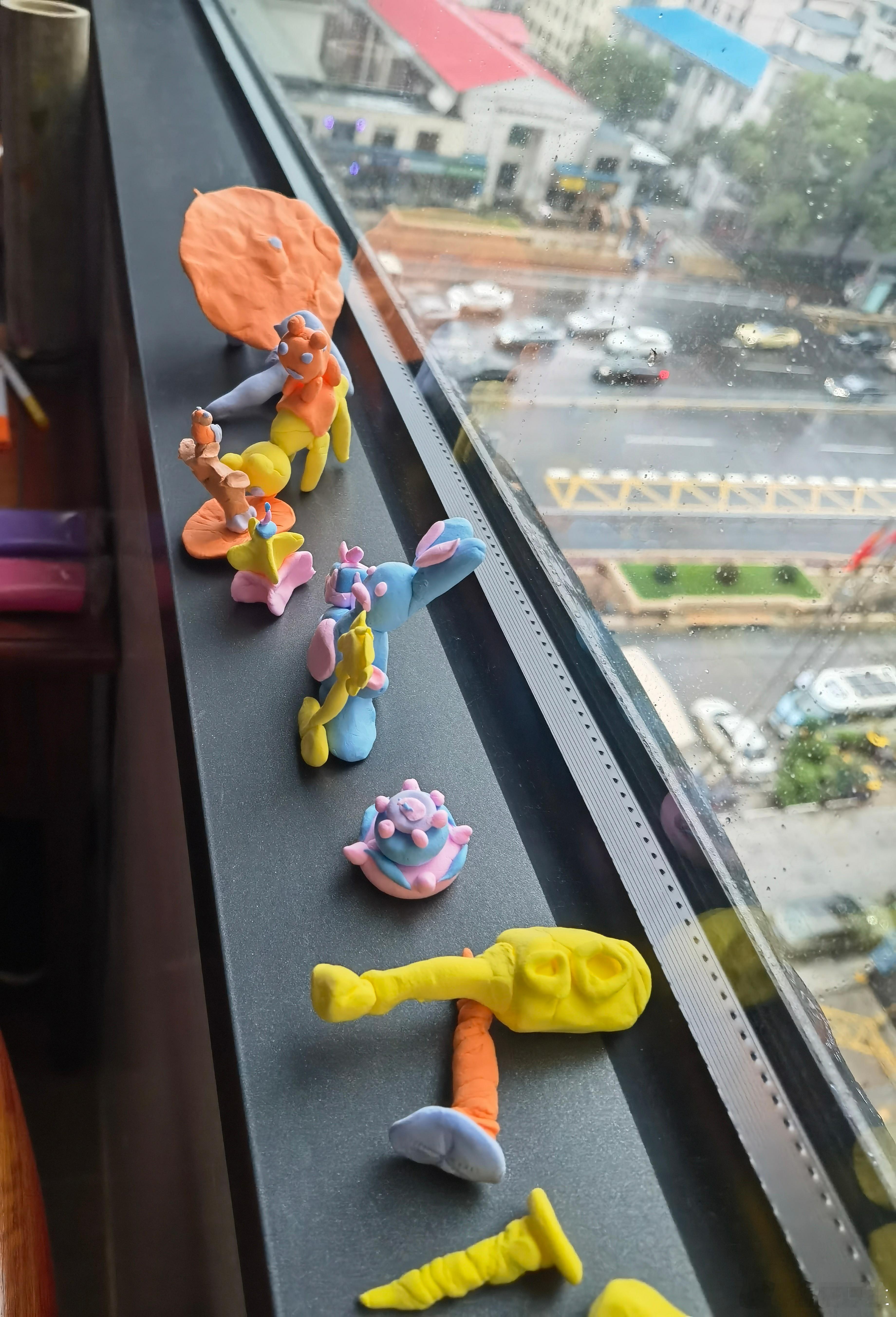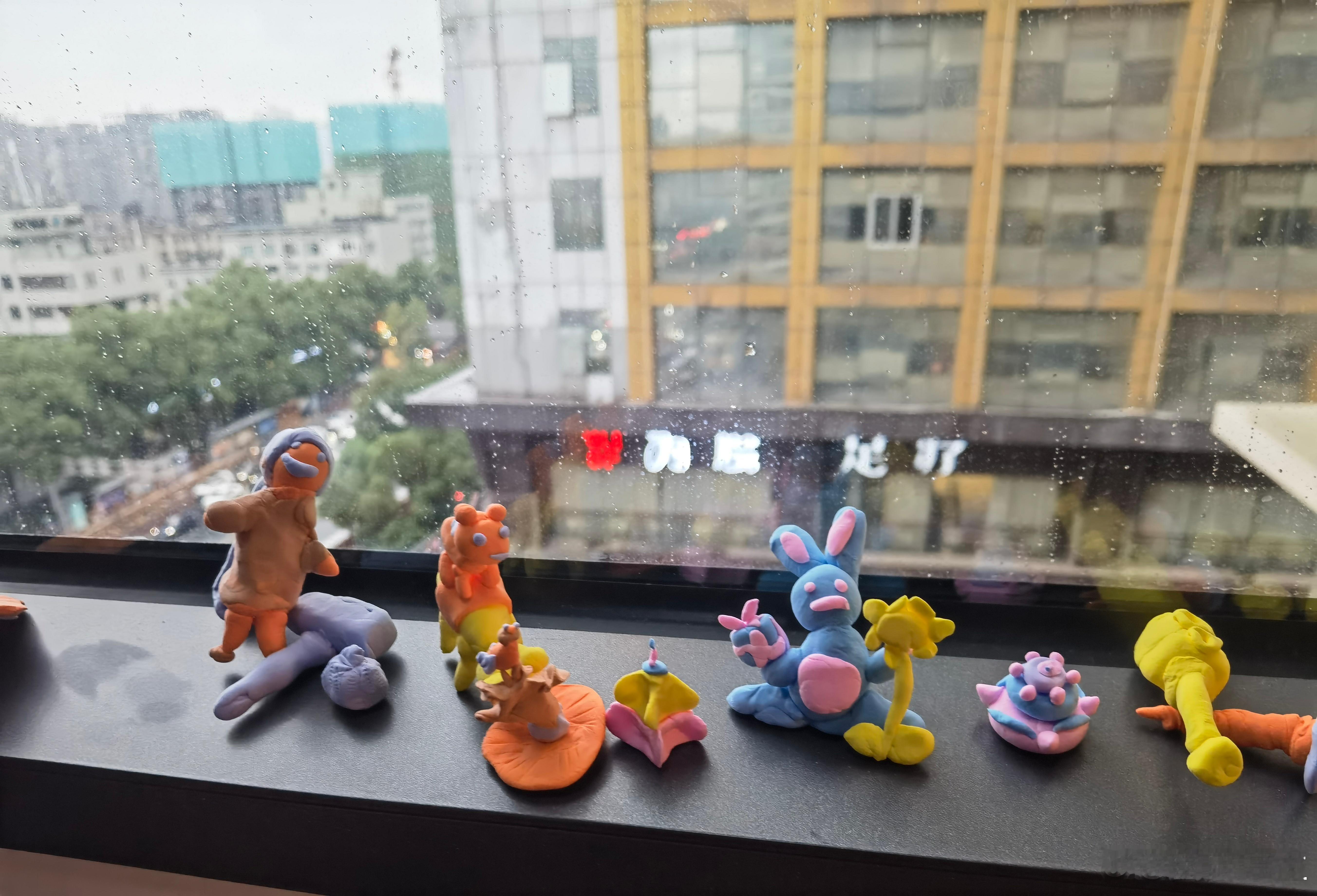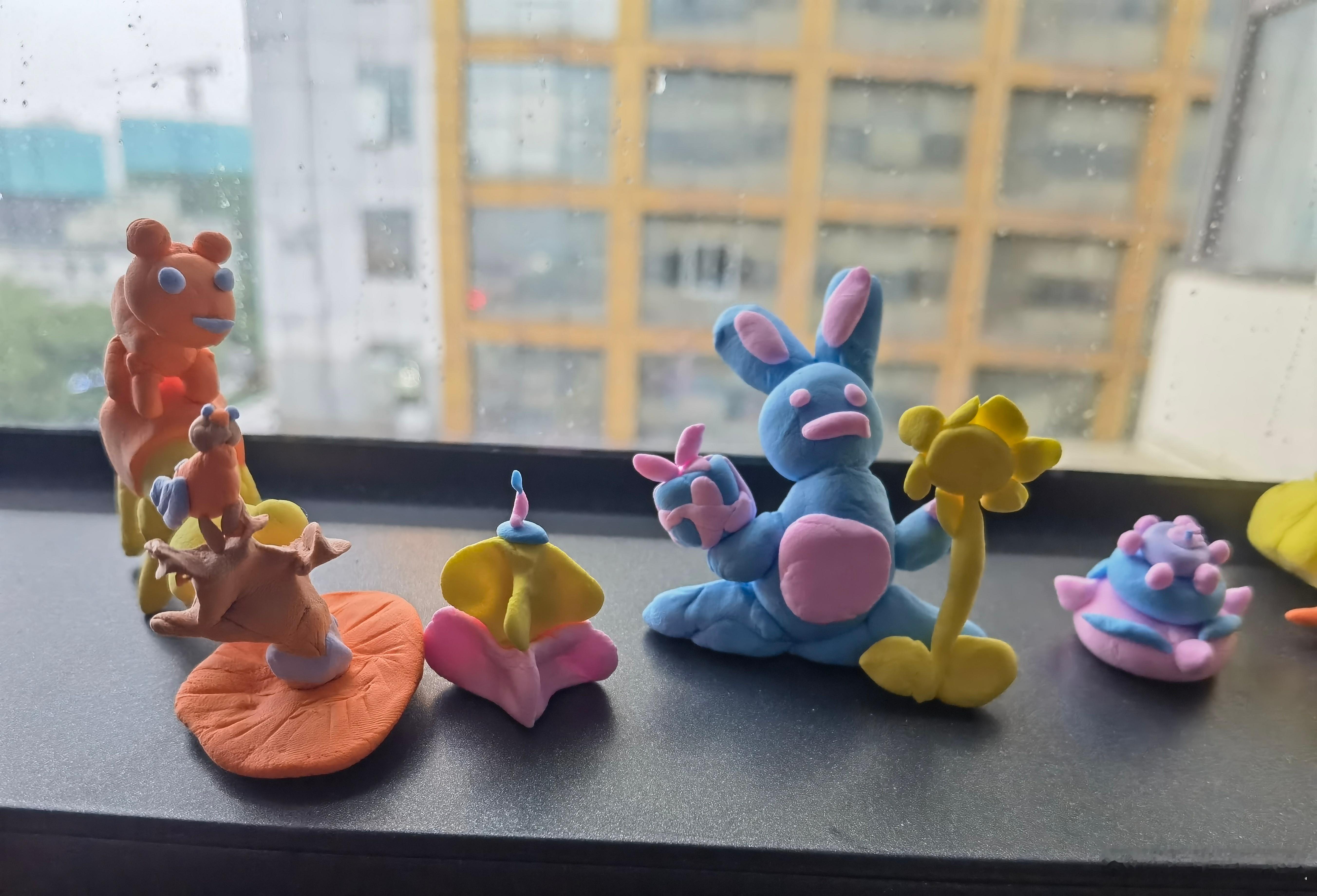 下午回家一看,吓我一跳,子月工场已下线系列手工作品。品类繁多,惟妙惟肖,有兔子、老虎、小鸟、山羊等动物,有神情鲜活的人物,也有蘑菇、鲜花等植物,还有锤子、钉子、雨伞等物品,还有包子、蛋糕等好吃的食物。