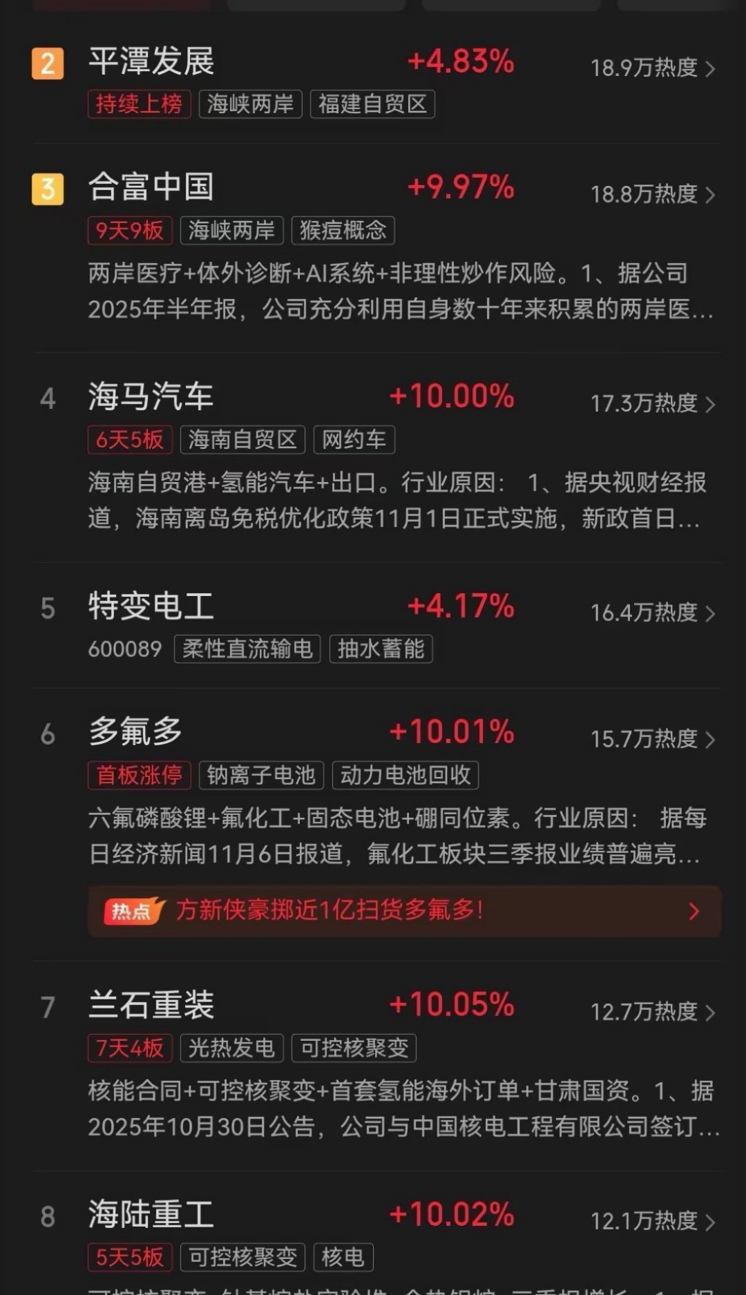 7. 福龙马(603686.SH):周涨3.2%,本周大幅震荡,多空分歧激烈。环卫设备中标+特斯拉机器人减速器订单+海鲜两岸+马年马字辈,还带有龙,跟风平潭发展。