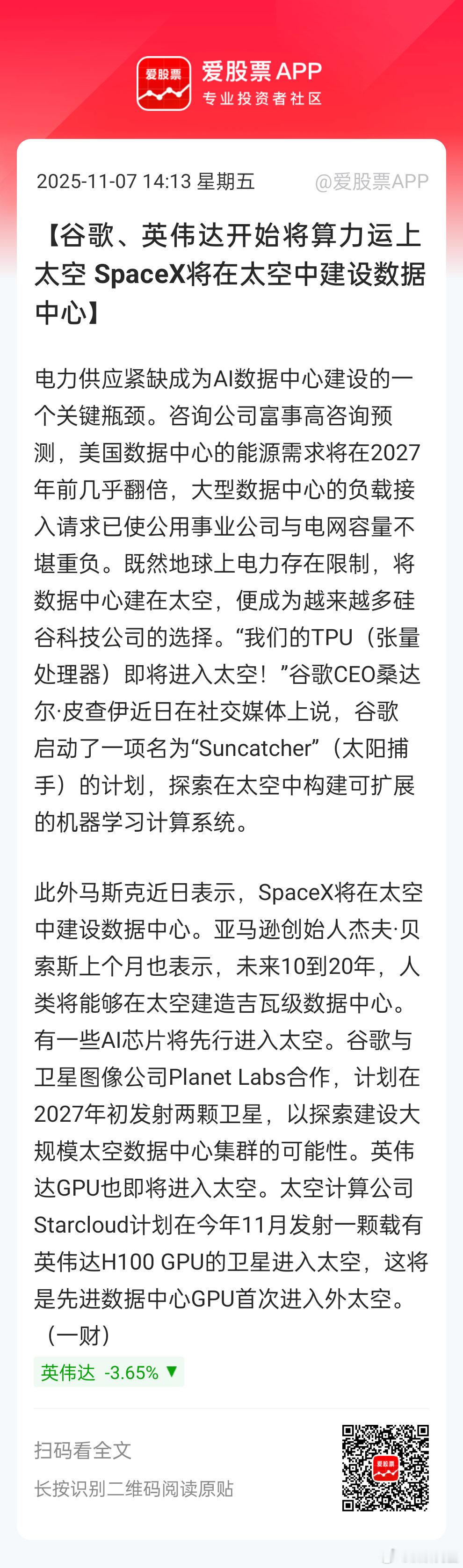 太空数据中心[挖鼻]利好航天+光伏发电??