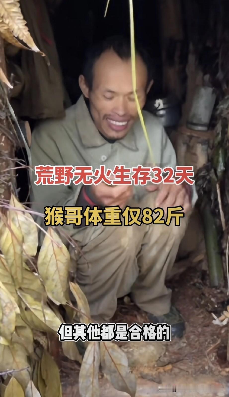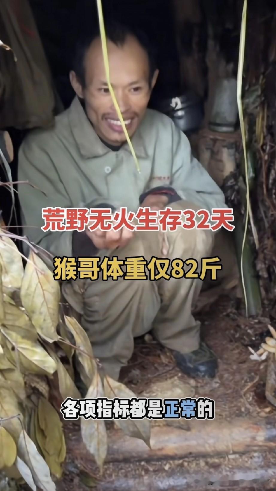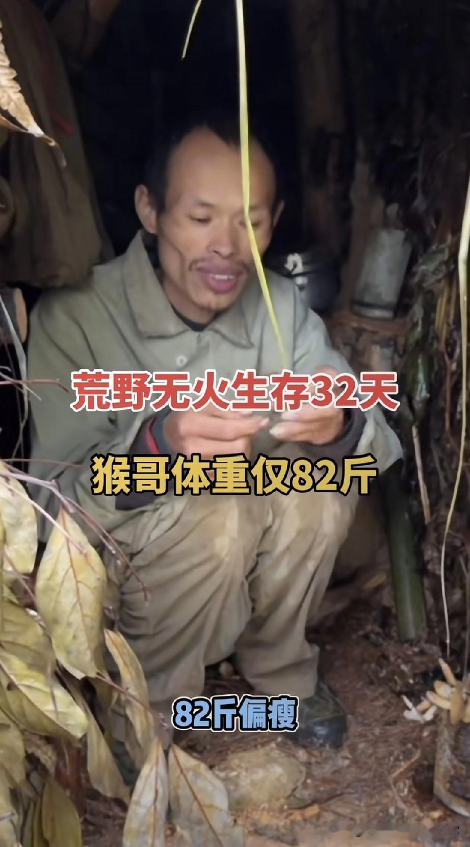 荒野求生32天瘦到80斤!猴哥啃生食硬扛 看这镜头我心都揪紧了——92年的“猴哥”在荒野熬了32天,没生火没热食,体重从82斤掉到80斤,捏着野菜的手都在抖,却咧嘴笑“各项指标都正常”。 他蹲在破棚子里剥树皮的样子,有人喊“太拼了”,有人骂“拿命换流量不值当”。评论区更扎心:“不如找份工踏实还债,折腾这干啥?” 可他攥着野菜嚼的劲儿,像在跟荒野较劲儿——饿到眼冒金星,却偏要撑到最后。 但这事儿越想越拧巴:为了“生存挑战”把自己熬成皮包骨,到底是证明了韧性,还是钻了“博眼球”的牛角尖?要是这80斤的体重能换奖金,你觉得这苦吃得值吗?