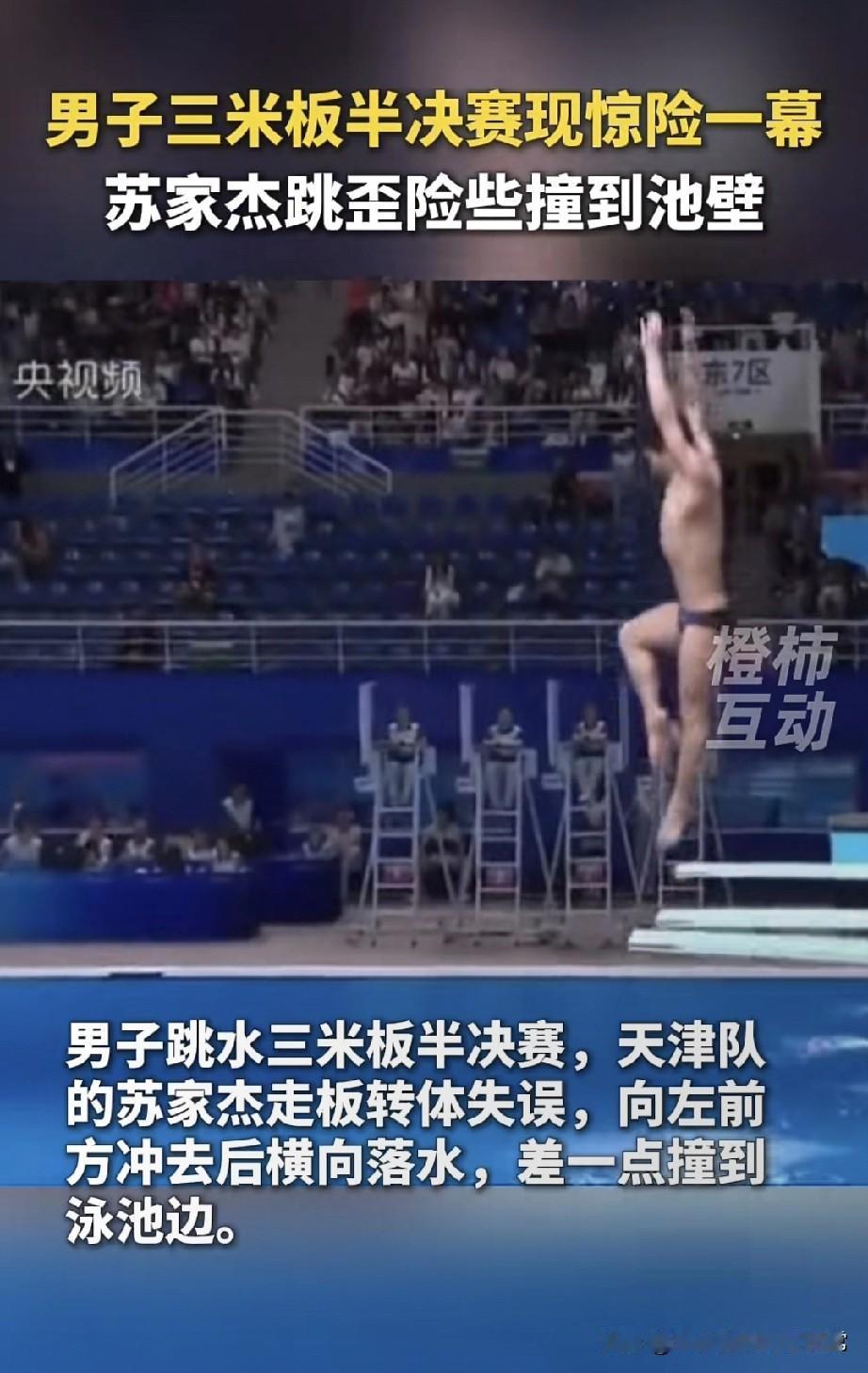 三米板半决赛季惊出冷汗!差点撞池壁! 刚看这镜头我心都揪起来了——天津队苏家杰在三米板半决赛季,走板转体直接偏了方向,整个人横着往池壁冲! 入水那下水花像炸开的雷,溅得裁判席都晃了晃,现场观众集体“嘶”了一声。后来看慢放才敢喘气:就差半米,撞到池壁那后果不敢想啊。 有人说“这是失误到离谱”,但练过跳水的都懂:三米板腾空转体,但凡重心偏一毫米就是生死局。他落水后扒着池边起来时,后背都汗透了。 可竞技体育就是这样:观众骂“失误”,运动员赌的是命。但话说回来,要是这种惊险场面能让赛事方加个安全缓冲带,这“惊魂一跳”是不是也算没白摔?