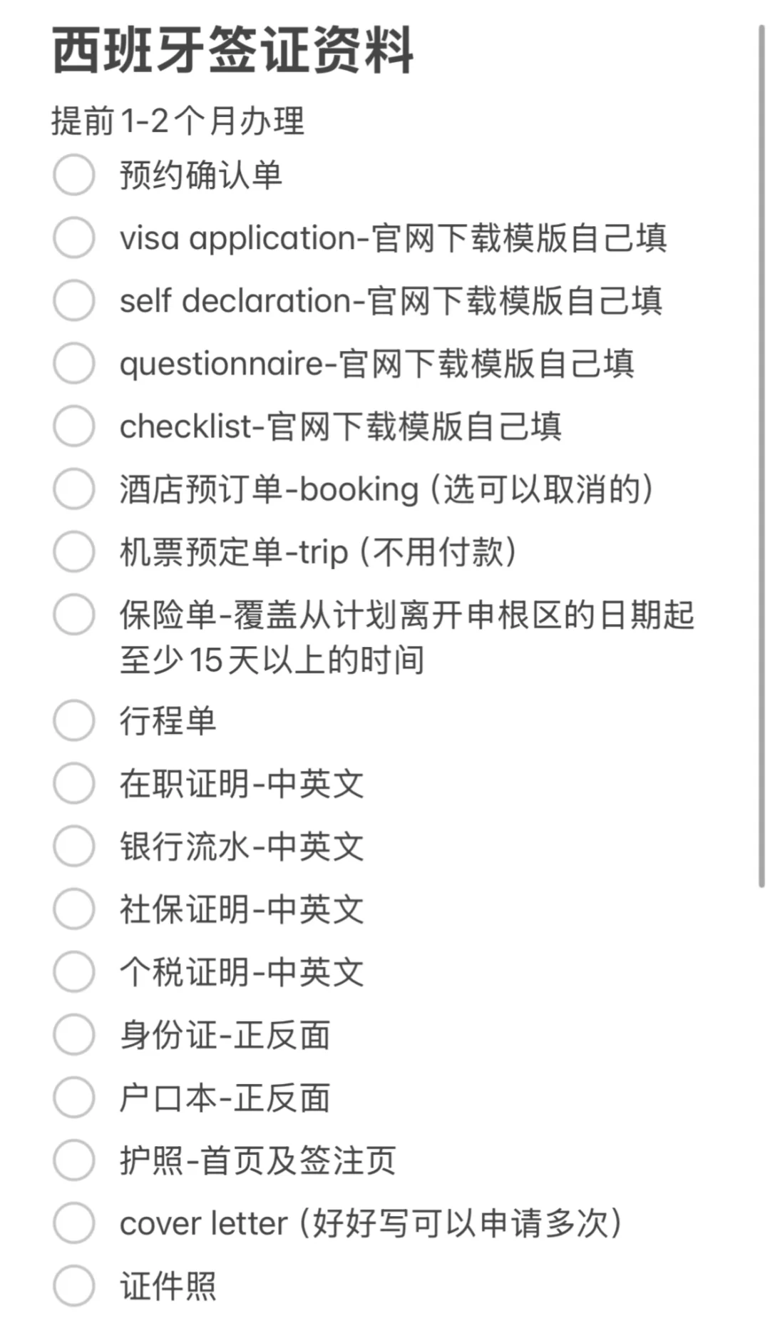 非白本+在职身份办理很容易下签,推荐办理西班牙或意大利签证,材料清单见图8