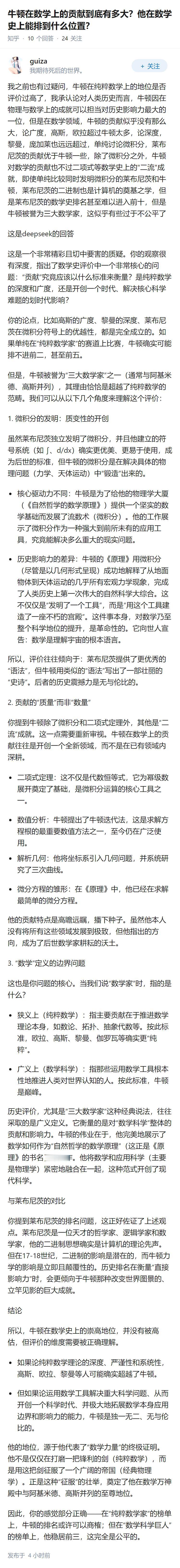 牛顿在数学上的贡献到底有多大?他在数学史上能排到什么位置?