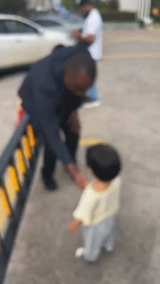 这个当家长的心可真大。 竟然让孩子和陌生的外国黑人握手问好? 咱们中国人对外国人就是太好客、太热情了!萌娃老外